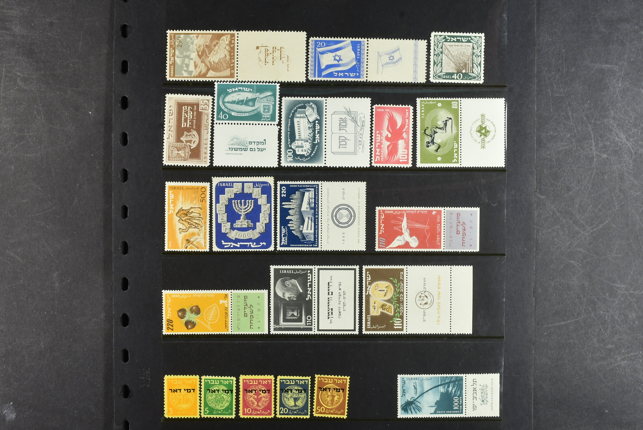 Israel. ★★ 1949–1960 on leaves. All different, e.g. Mi 15–16, 30, 37, 41, 66, 75–76, 79, 86, postage due 1–5. Good quality. Mi € 728 (28)
