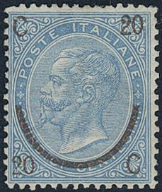 Italy. Michel 25 II ★, 1865 Overprint on Victor Emanuel II 20/15 c pale blue with 4 dots. EUR 5000