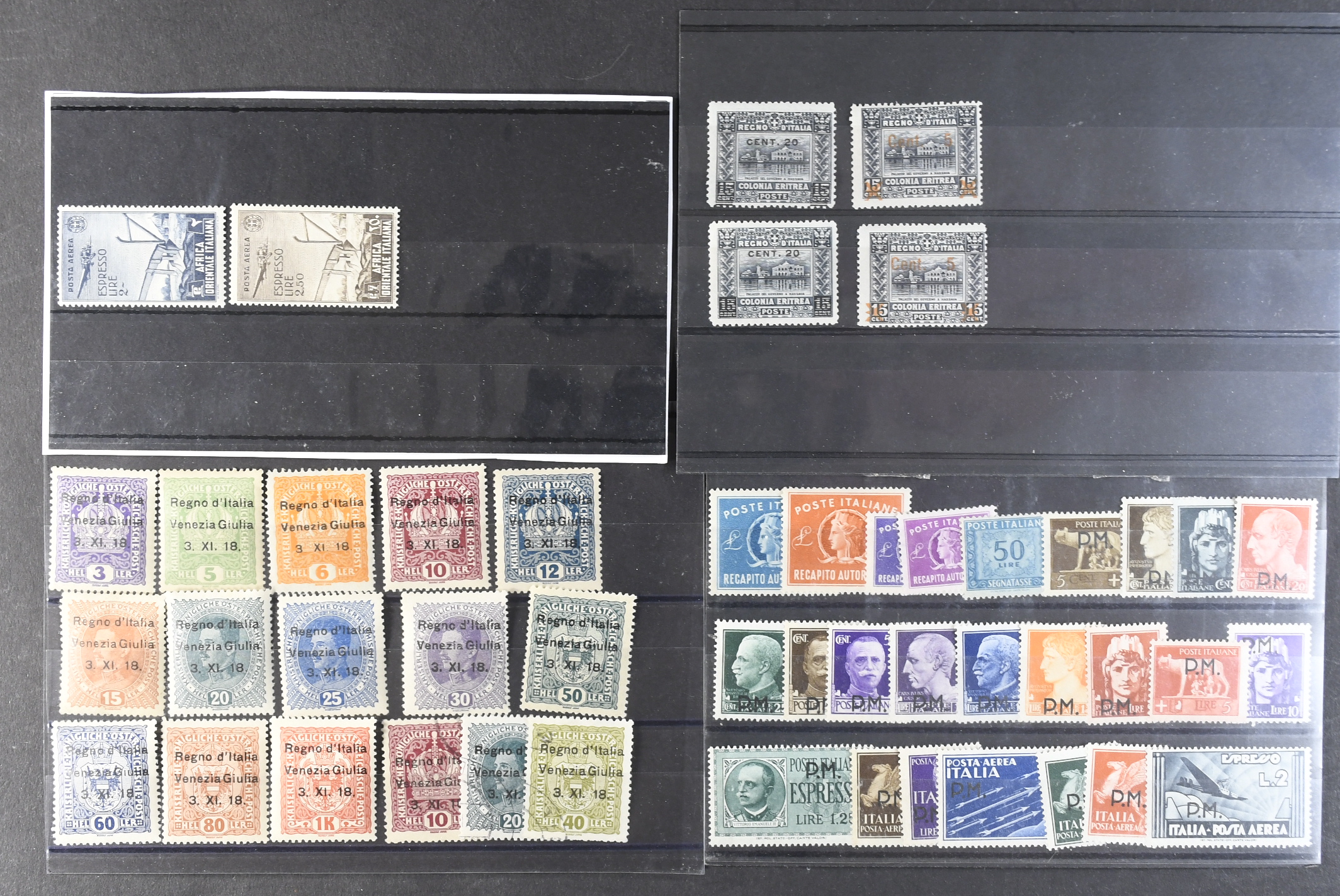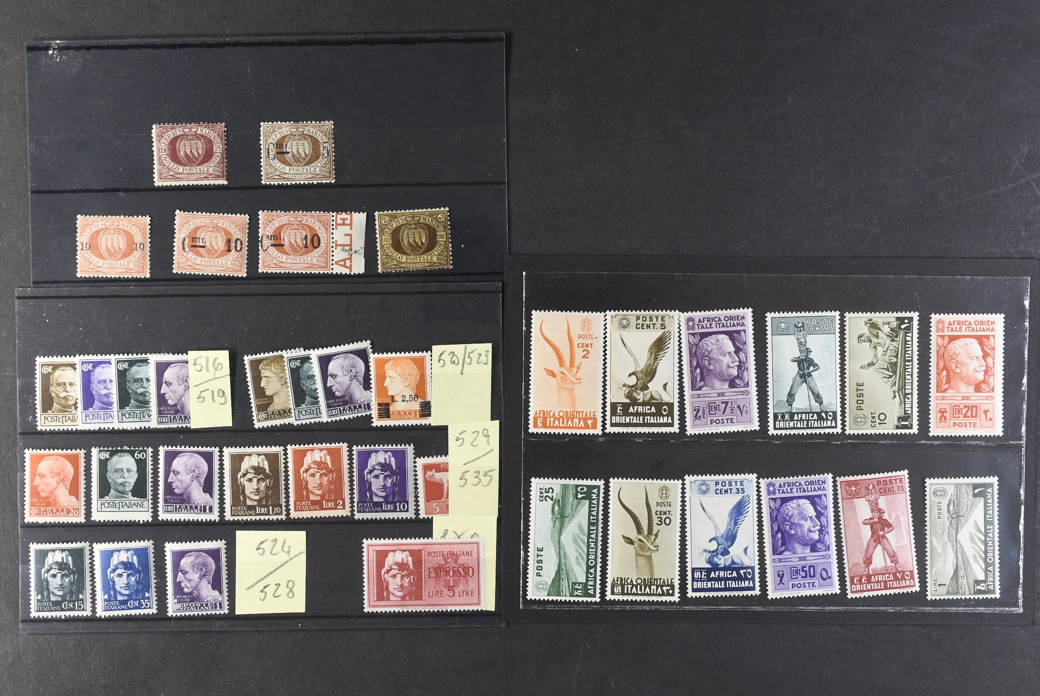 Italy. Lot mostly ★ on seven stock cards. Areas, also San Marino.