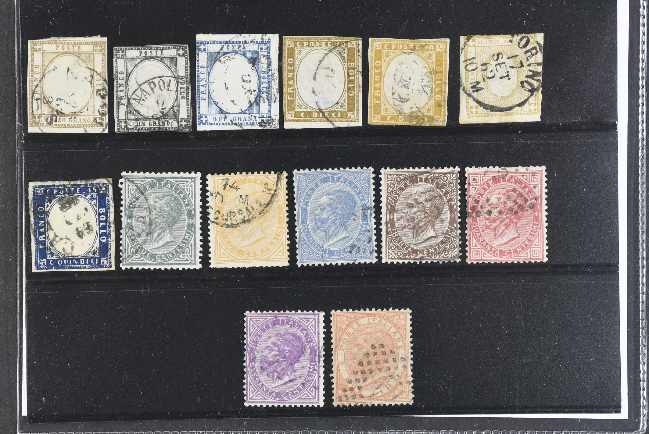 Italy. Used 1861–1863. All different, e.g. Mi 1, 3, 6, 9b, 13–14, 16–22. Mostly good quality. Mi € 882 (14)