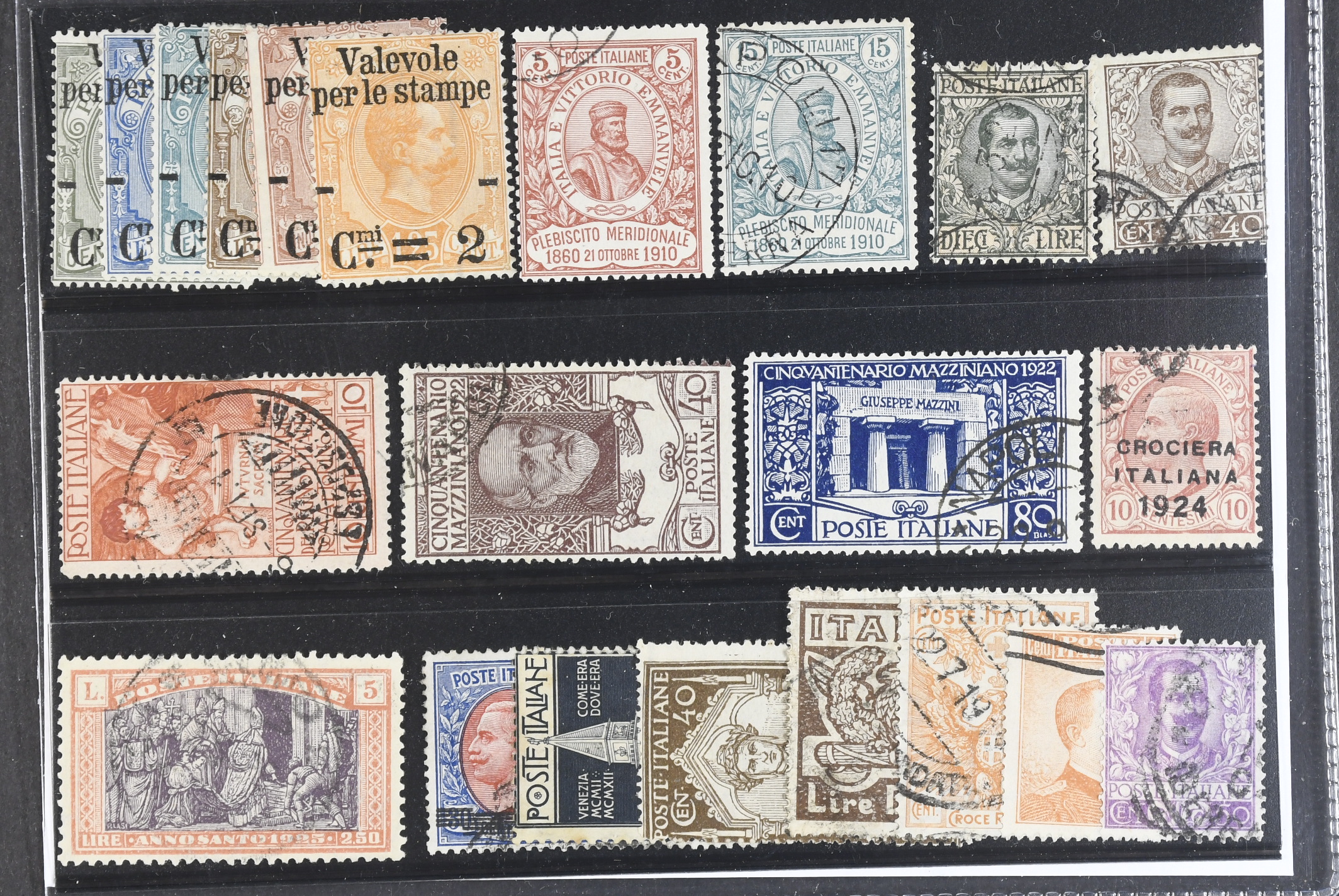 Italy. Used 1890–1924. All different, e.g. Mi 61–66, 97–98, 99, 102, 158–59, 211. Mostly good quality. Mi € 662 (21)