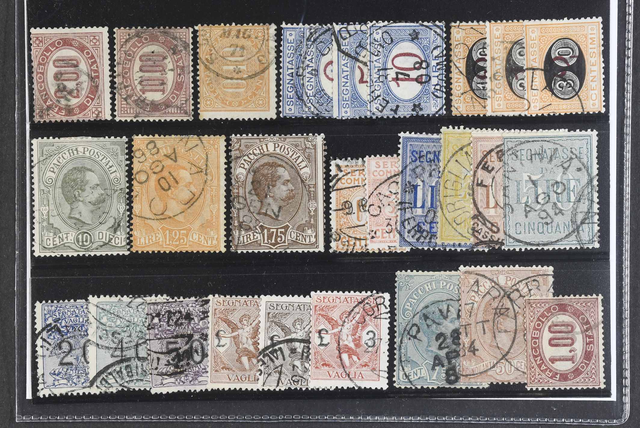 Italy. Used 1864–1924. Back-of-the-book. All different, e.g. officials 6, 8, postage due 2, 11–17, parcel 1, 5–6, potanweisung 1–7, verrechnng 2–7. Mostly good quality. Mi € 615 (28)