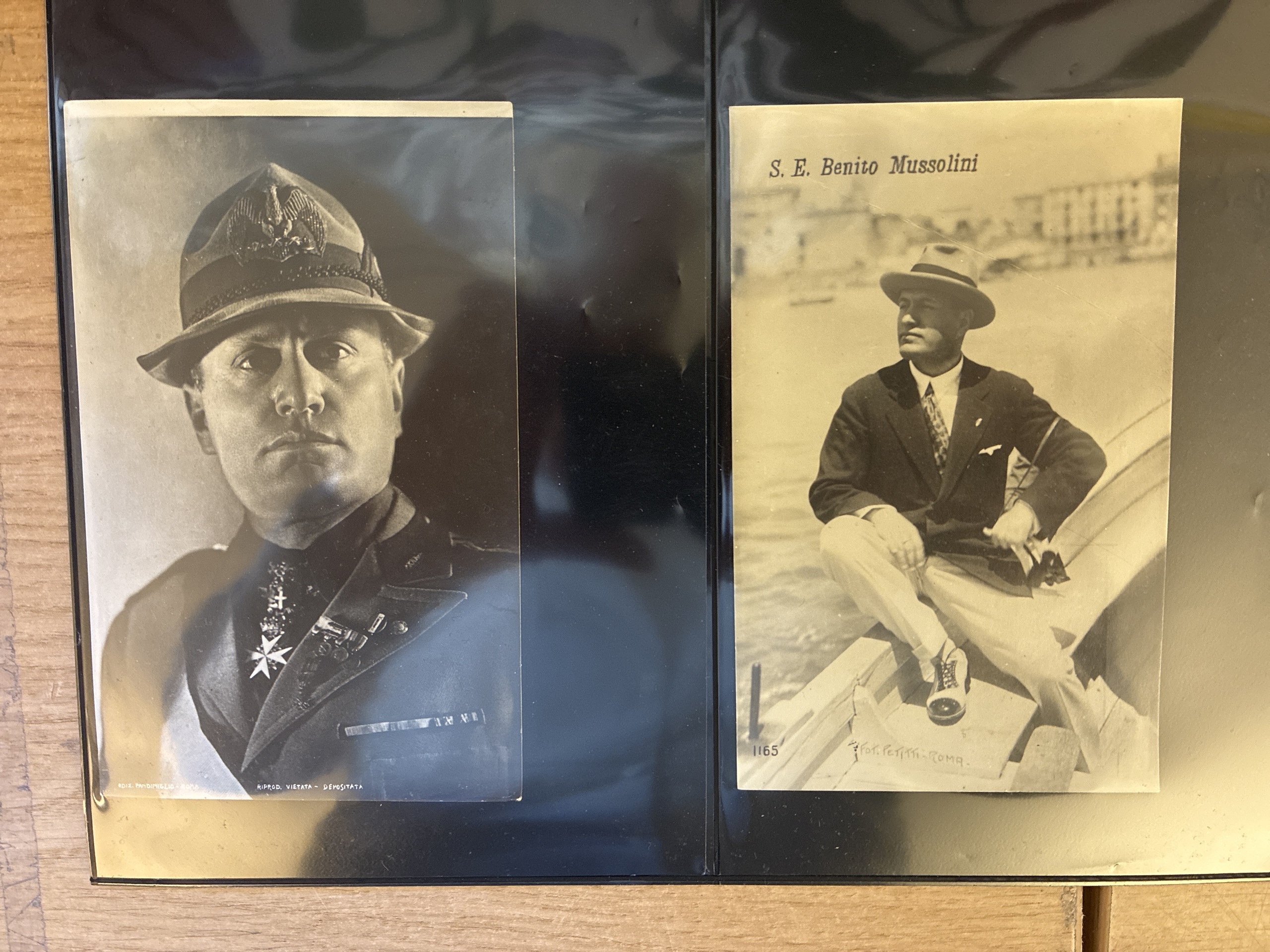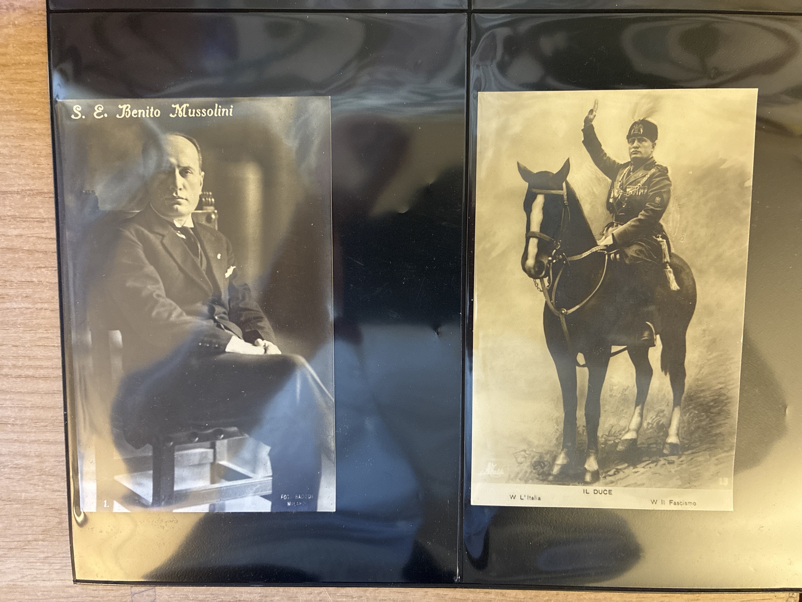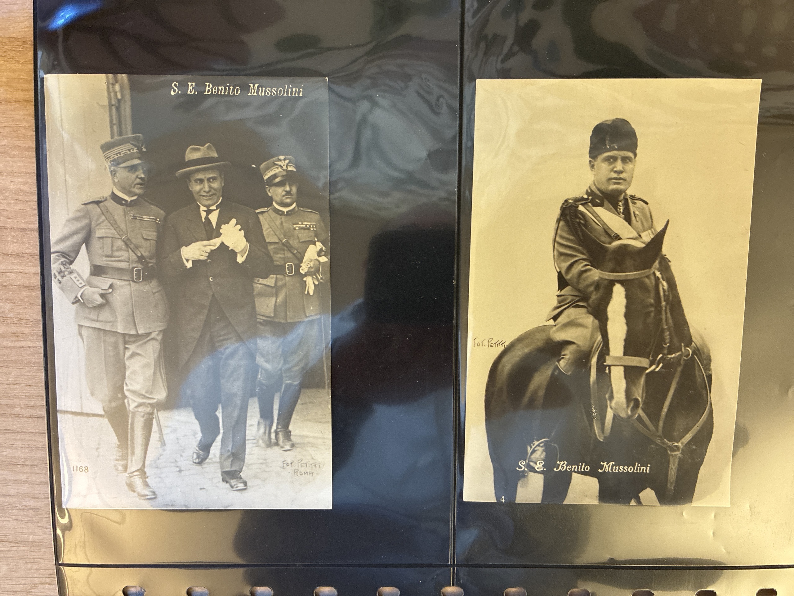 Italy. Picture postcards, collection on leaves. 8 postcards with Benito Mussolini, unused. The entire lot is presented at www.philea.se. Fine quality.