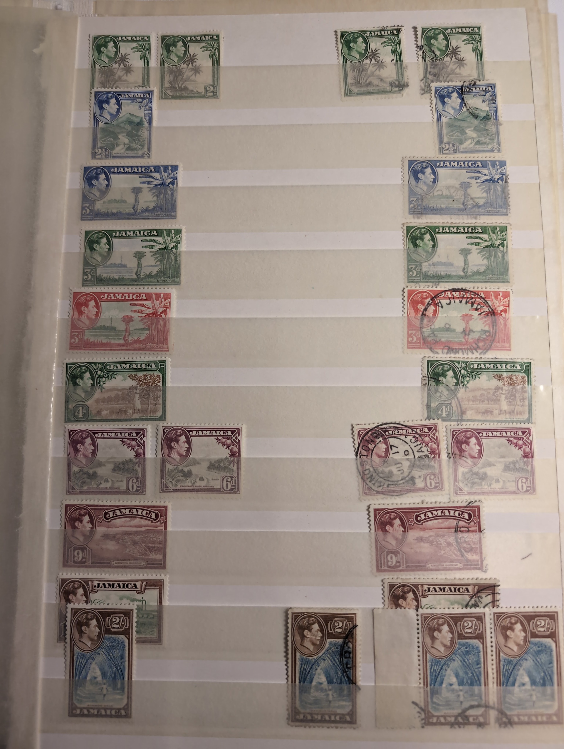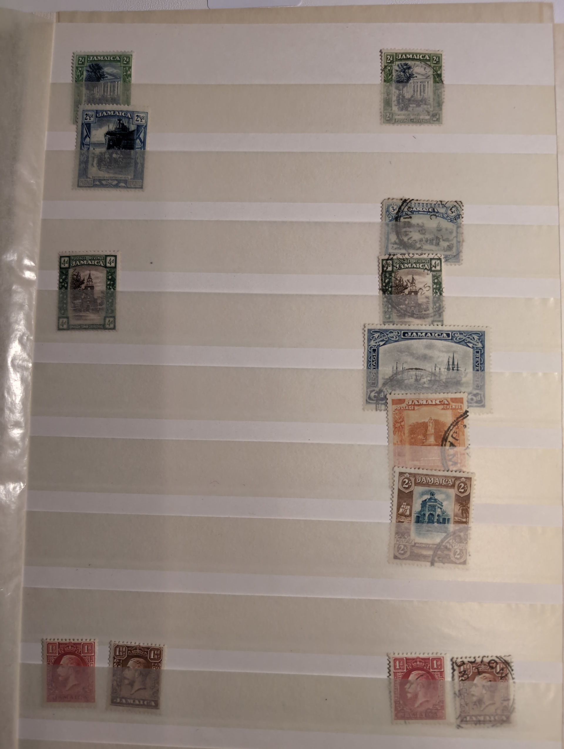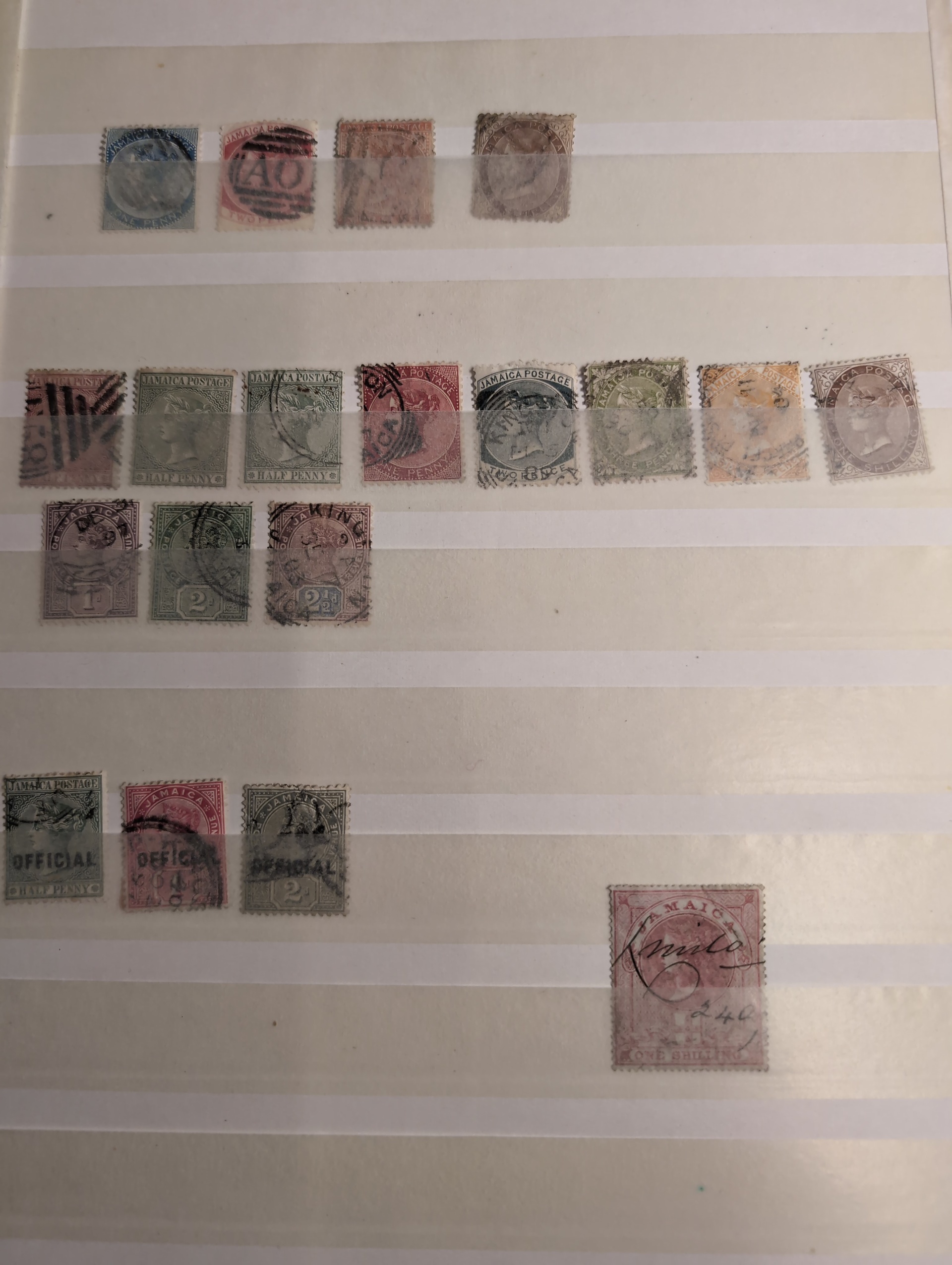Jamaica. Lot ★/⊙ 1860–1960s on leaves. Small collection on stockbook pages with some interesting stamps. Please see a selection of scans at www.philea.se. Somewhat mixed quality. (150–200)