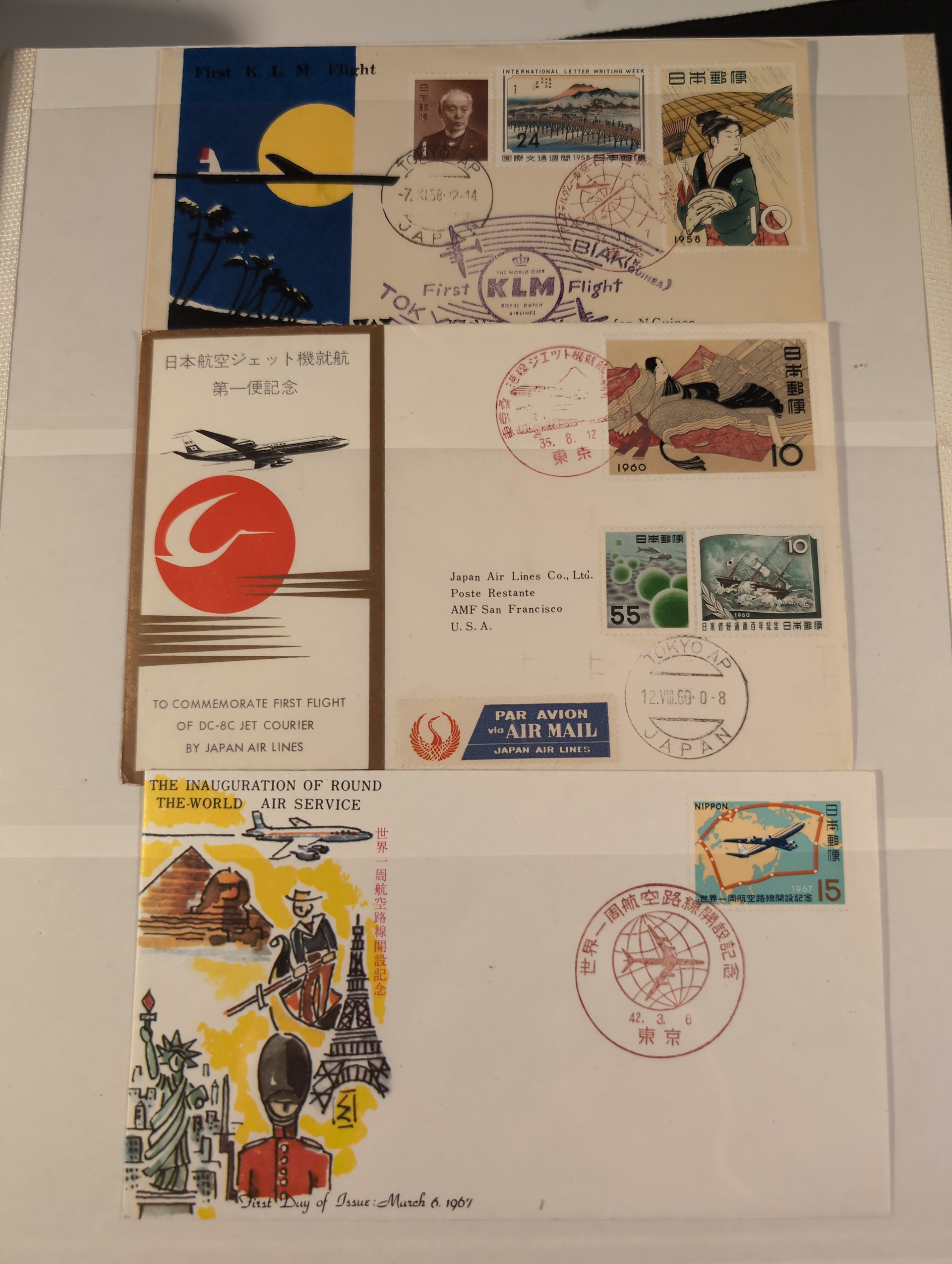 Japan. Accumulation ★★/★/⊙ 1880s–1970s in box. Four albums incl. some useful sets. one album with chrysanthemum stock unchecked for better cancels and album with FDC and FFC covers 50s and 60s. Please see a selection of scans at www.philea.se. Mostly good quality. (1000s)