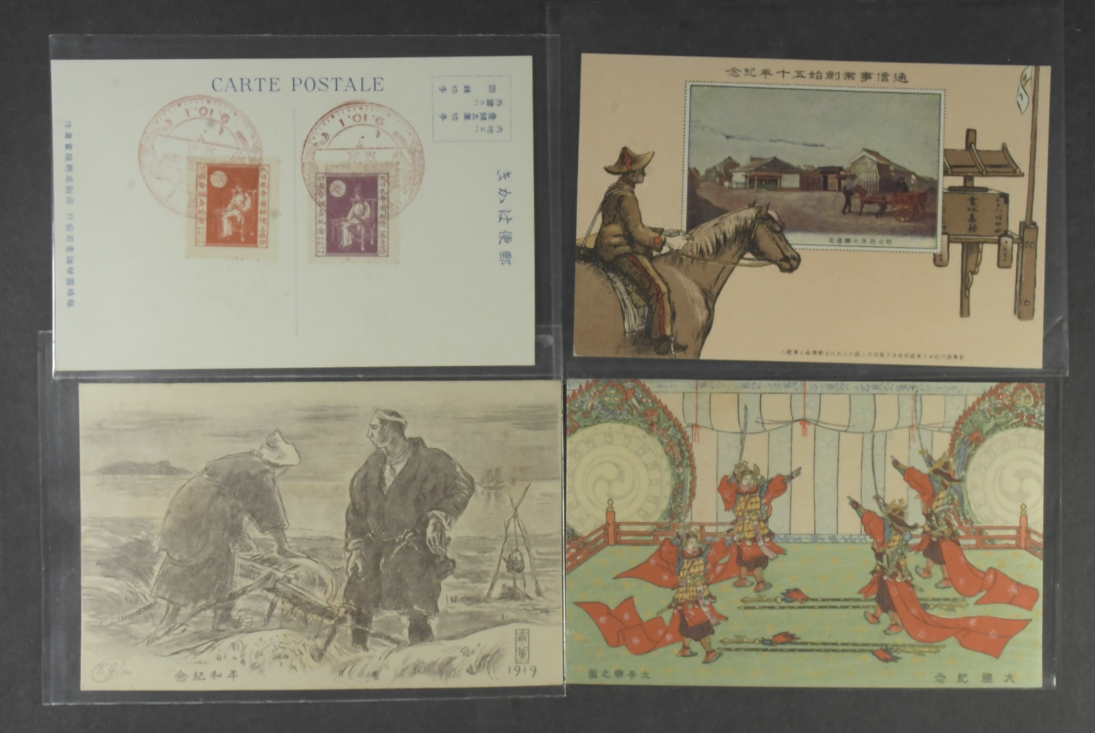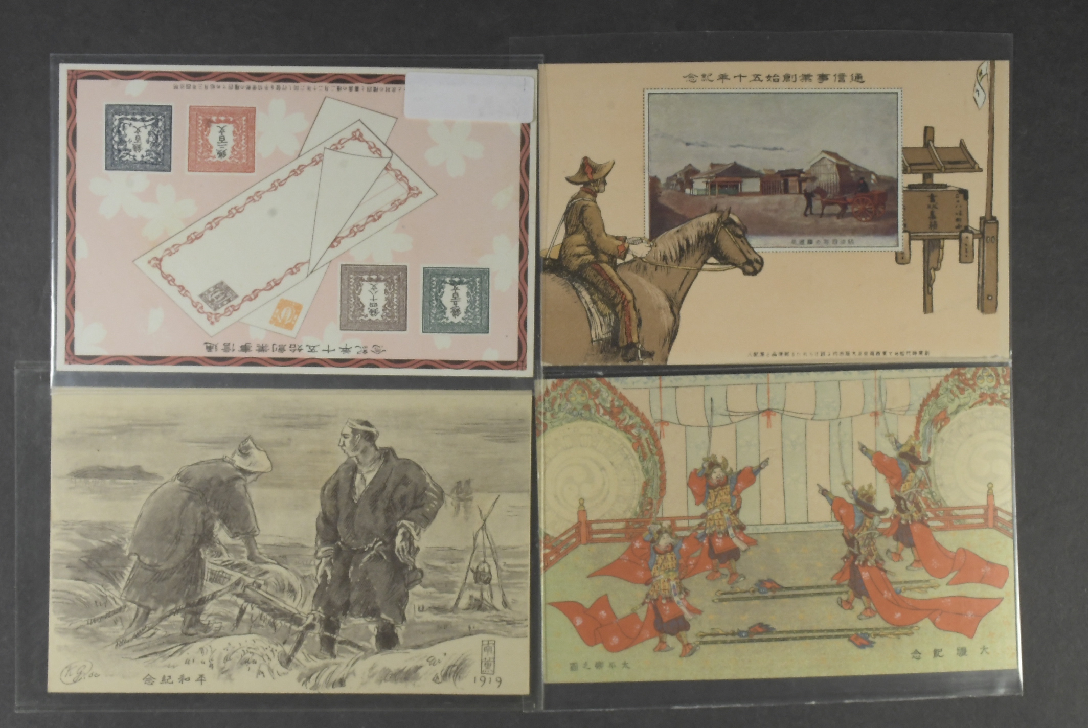 Japan. Picture postcards, lot. Very nice and attractive lot cards from 1915-21 with several GOOD FRAKINGS, eg. Mi 123-26x2, 130-33 x2 (first day), 140-41 x8, 144-45x3 and 142-43 x9.