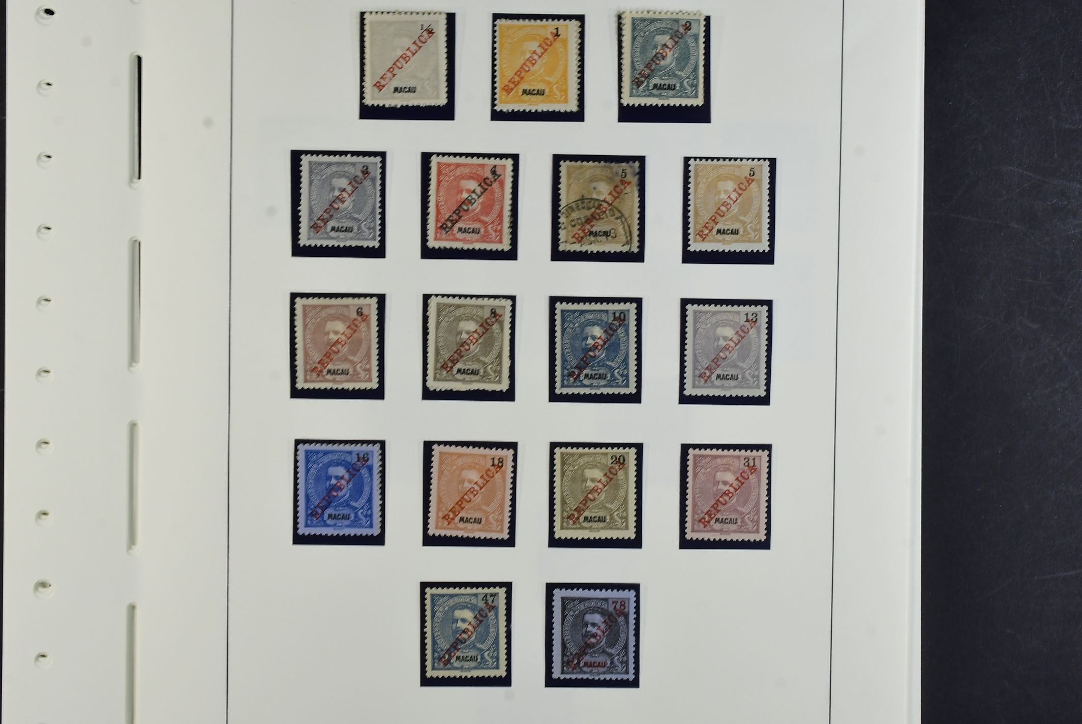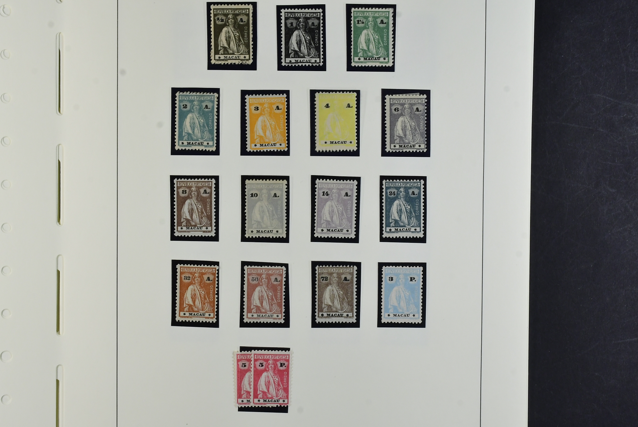 Macau. Collection ★★/★/⊙ 1884–1979 on leaves. Good section early stamps mostly mint, Crowns incl. some overprints, Luis I incl. better overprints, Vasco Da Gama set, Carlos I with values up to 78a, Carlos and Vasco da Gama Republica overprints, Good section Ceres incl. both 3p and 5p×2. later issues mostly used. Please see a selection of scans at www.philea.se. Good quality. (250+)