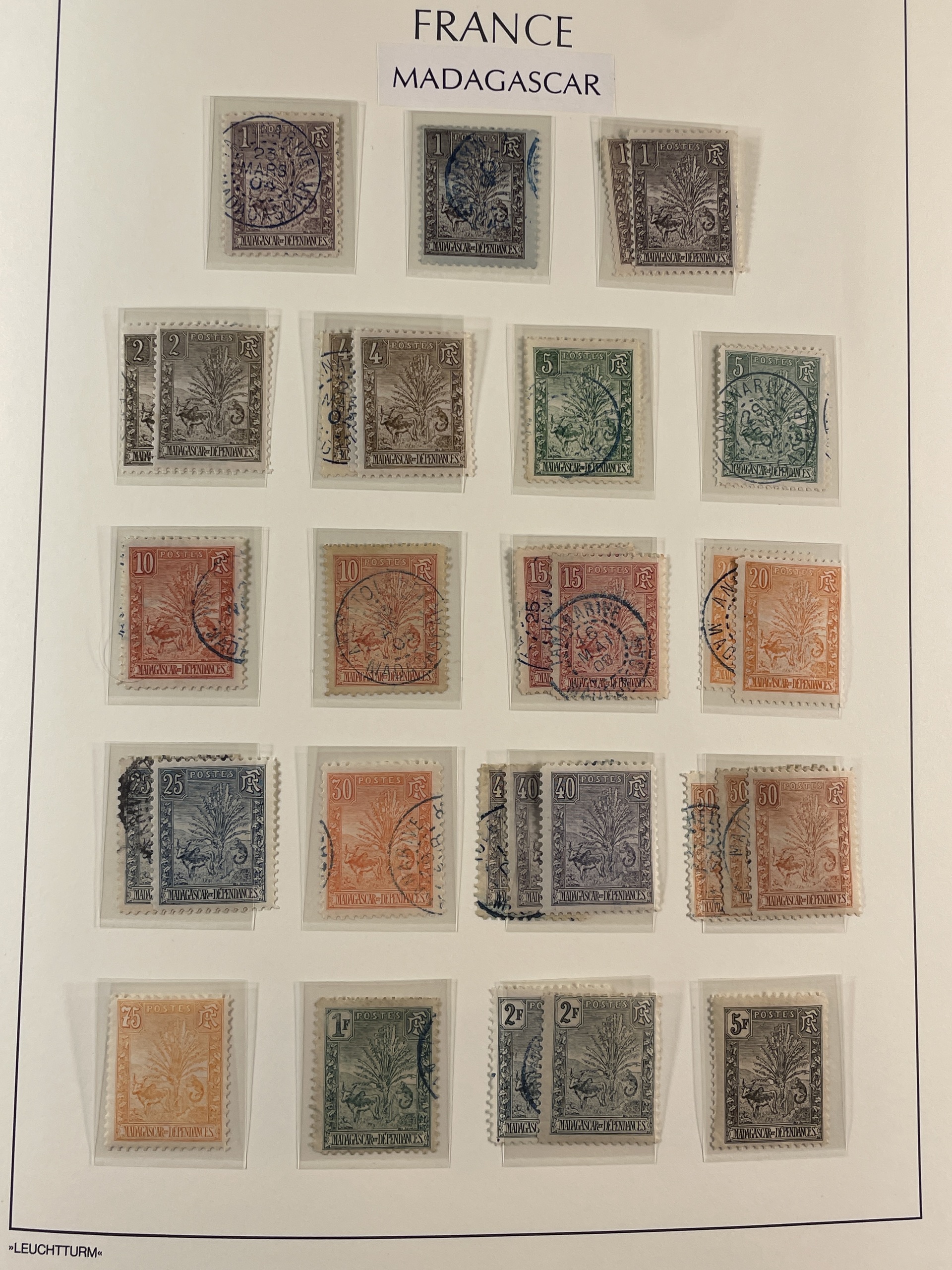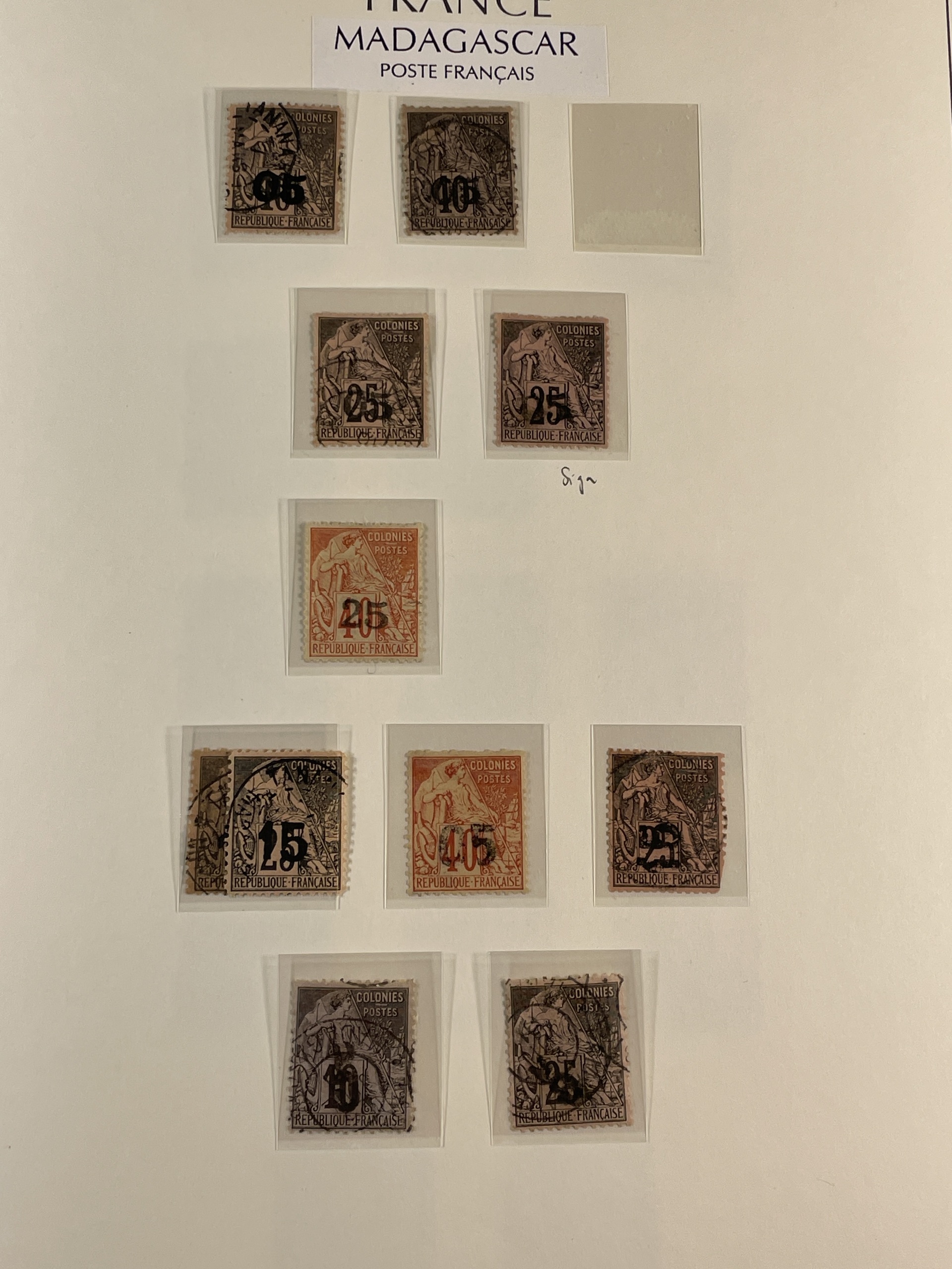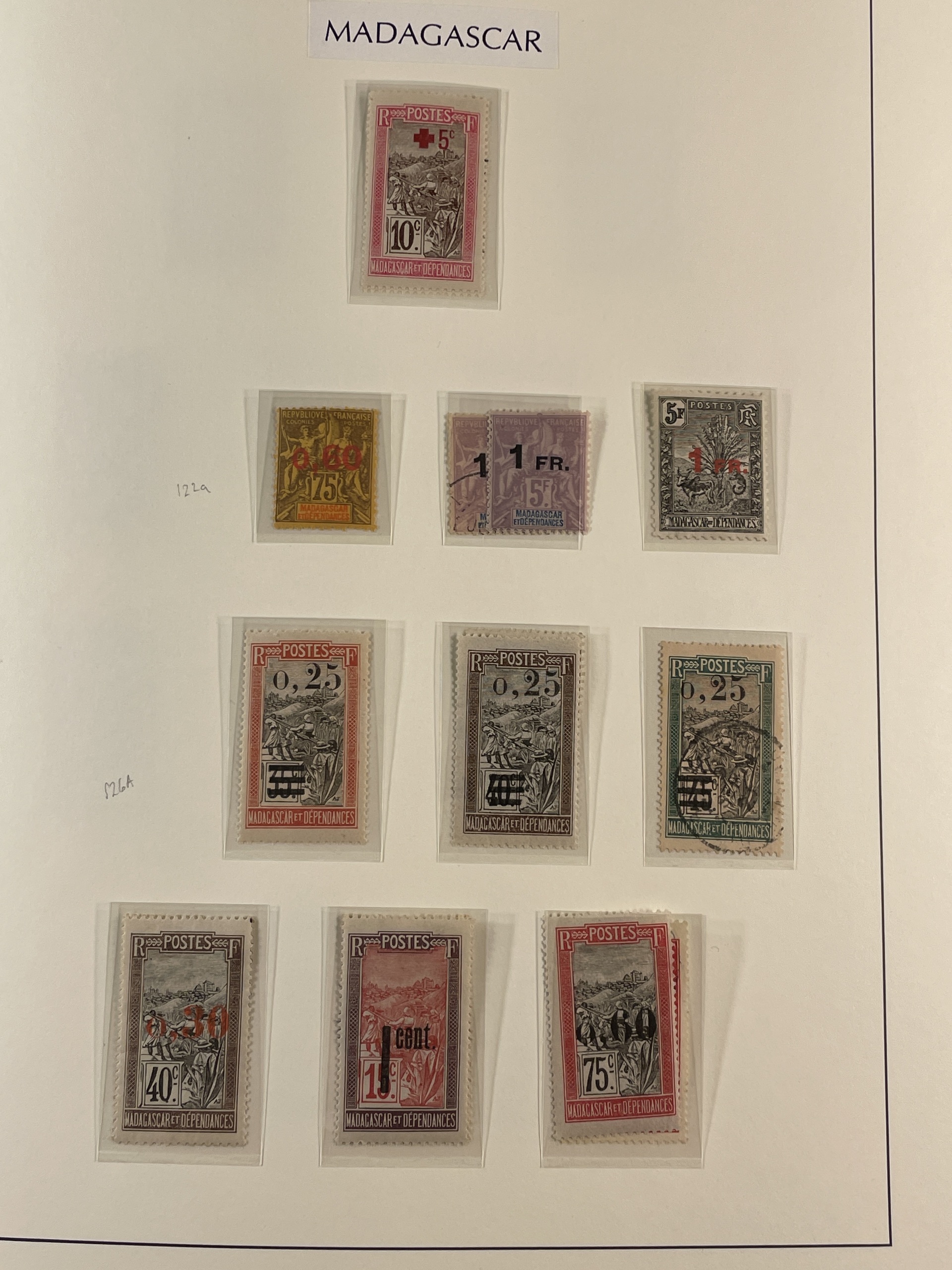 Madagascar. Collection ★/⊙ 1894–1957 in Leuchtturm album with stamp mounts. Home made pages with plenty of better stamps some signed or with dealer's mark. From 1922 well filled with complete sets mostly mint. Good section postage dues and also some revenue stamps. Please see a selection of scans at www.philea.se. Good quality. (400–500)