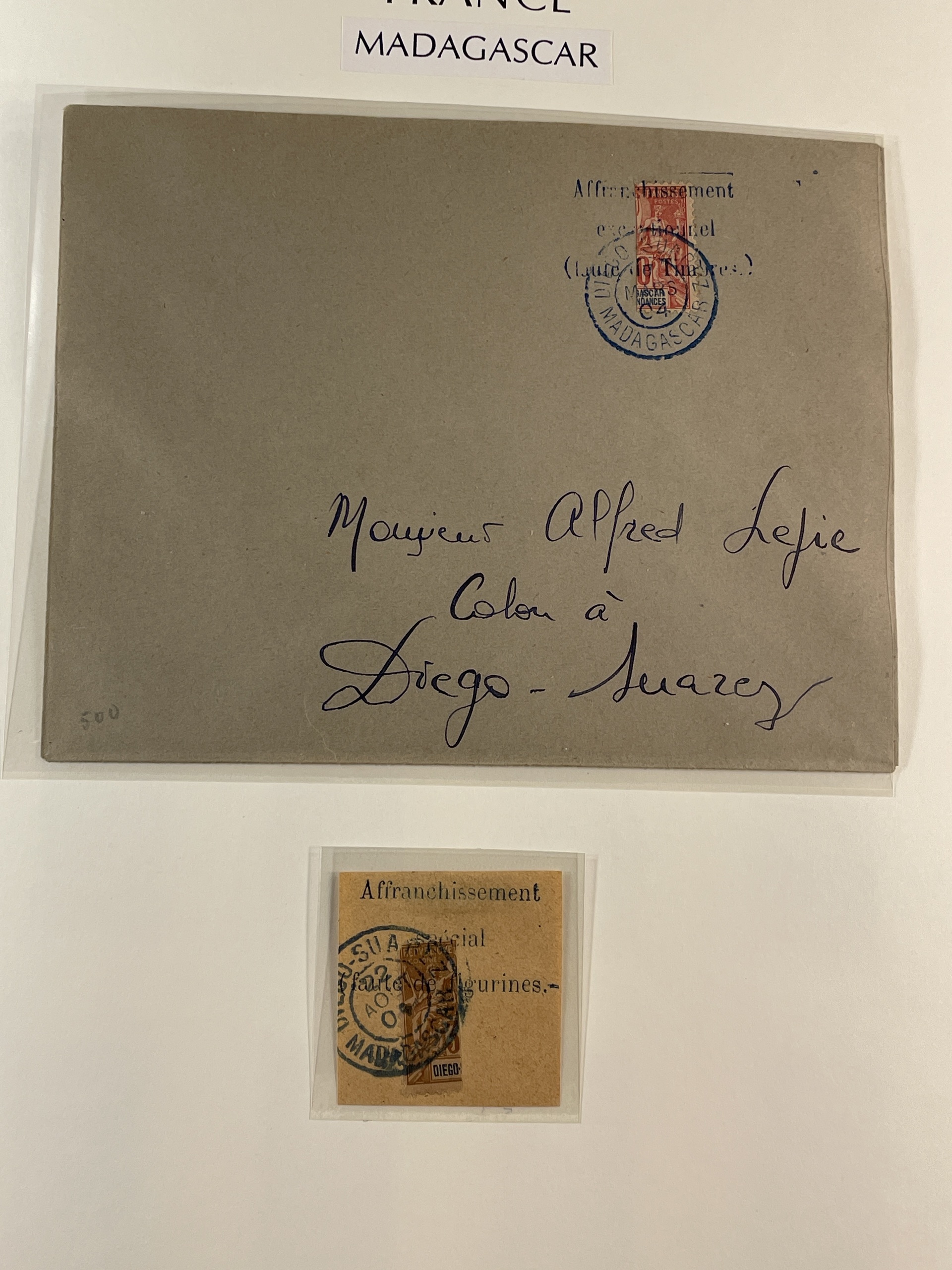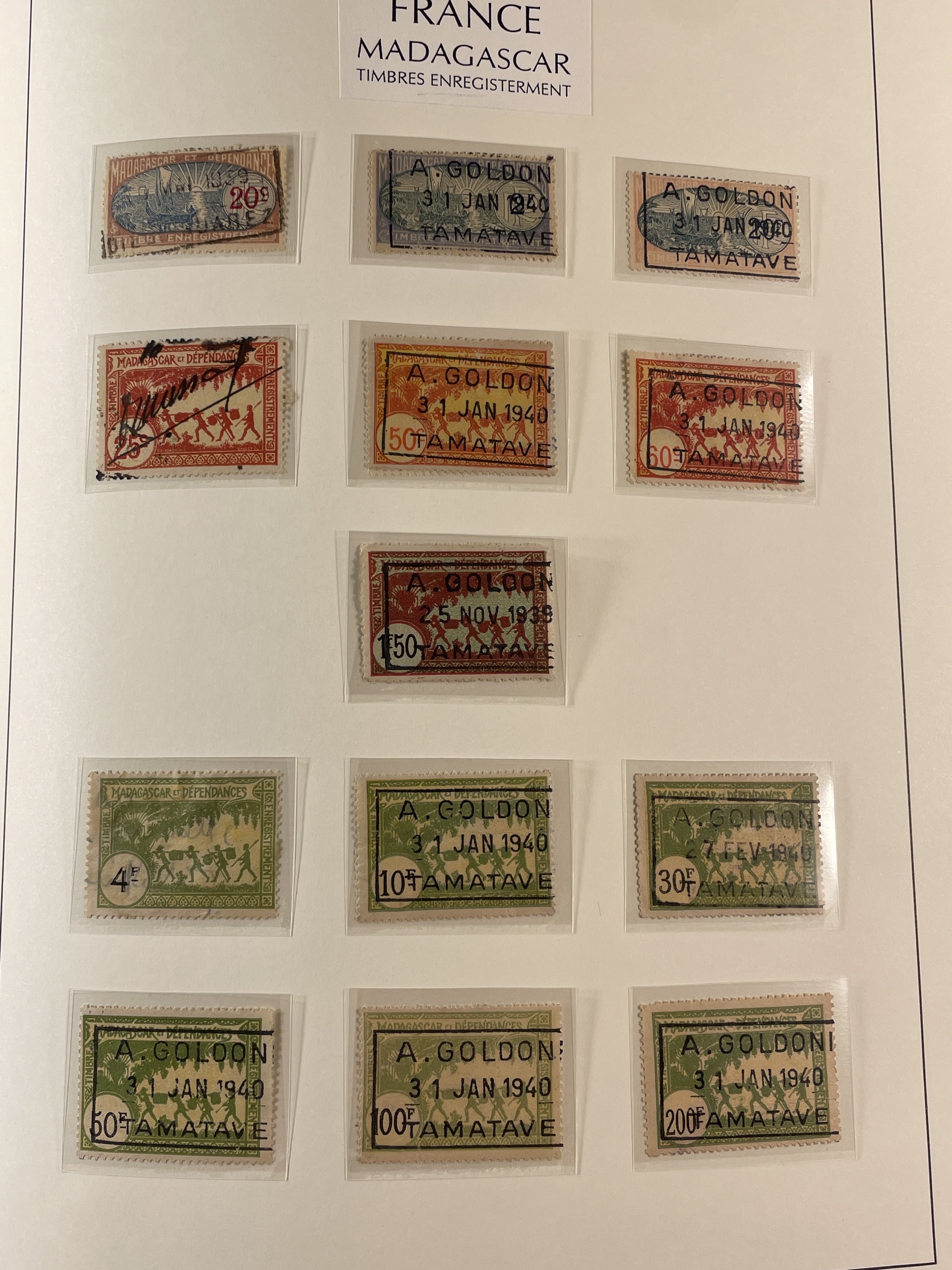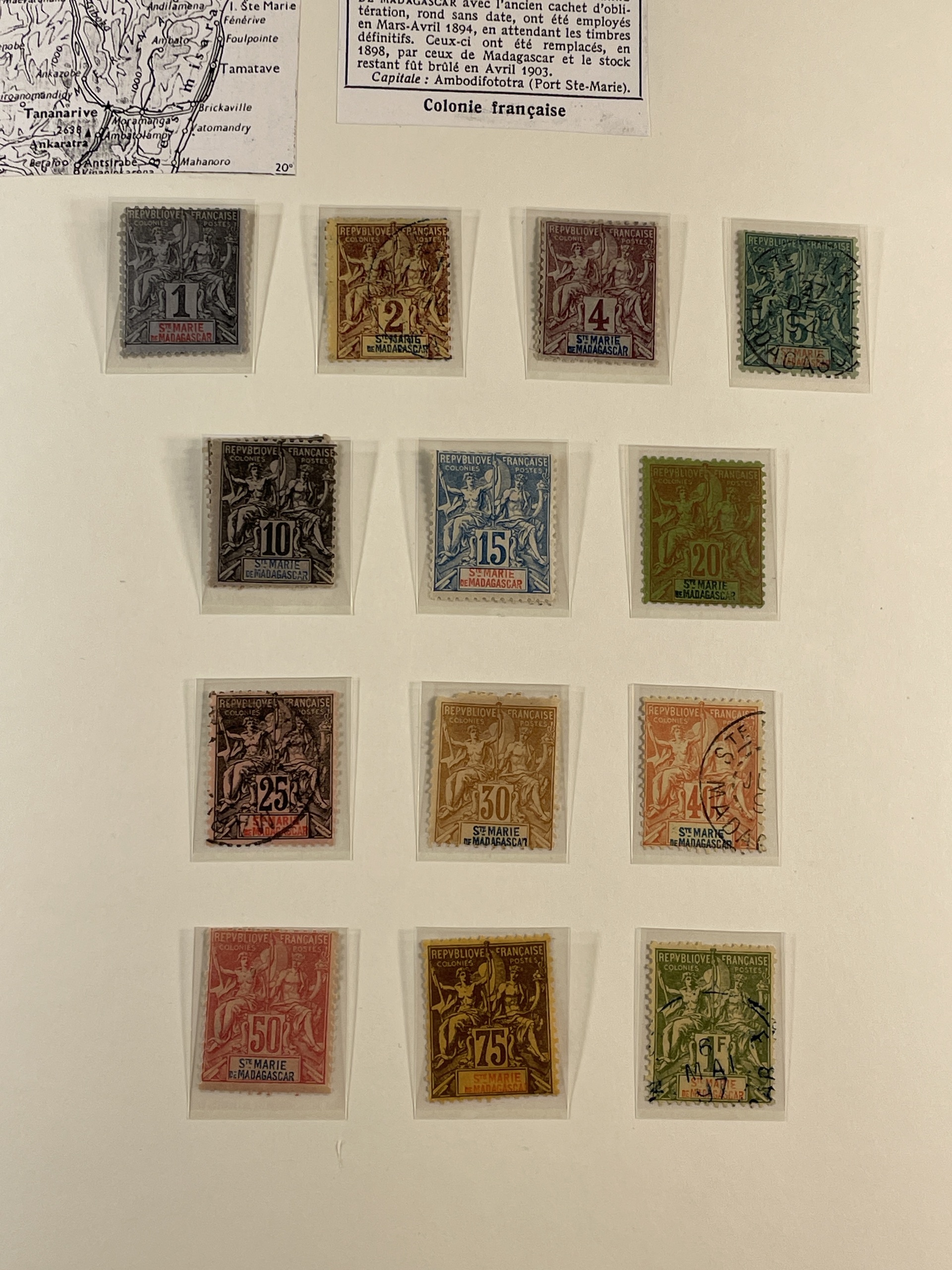 Madagascar. Collection ★/⊙ 1894–1957 in Leuchtturm album with stamp mounts. Home made pages with plenty of better stamps some signed or with dealer's mark. From 1922 well filled with complete sets mostly mint. Good section postage dues and also some revenue stamps. Please see a selection of scans at www.philea.se. Good quality. (400–500)