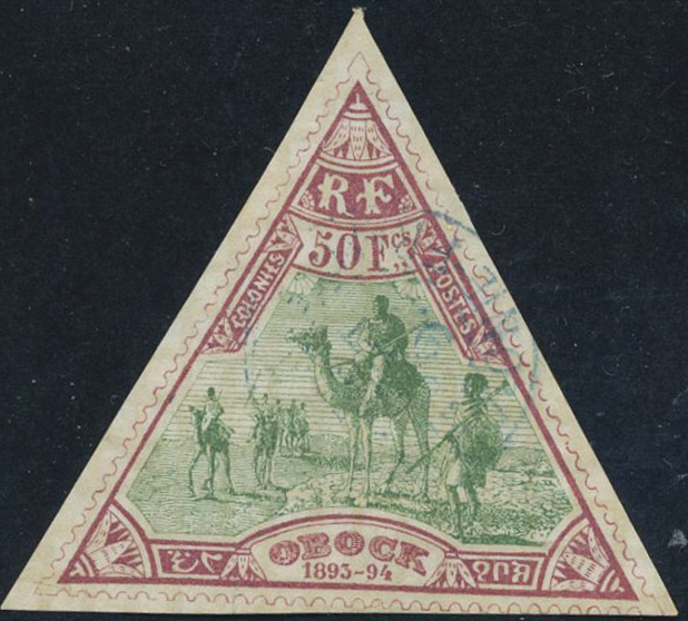 Obock. Michel 56 used, Camel post 50 Fr lilac-red and green VF, used. EUR 1300