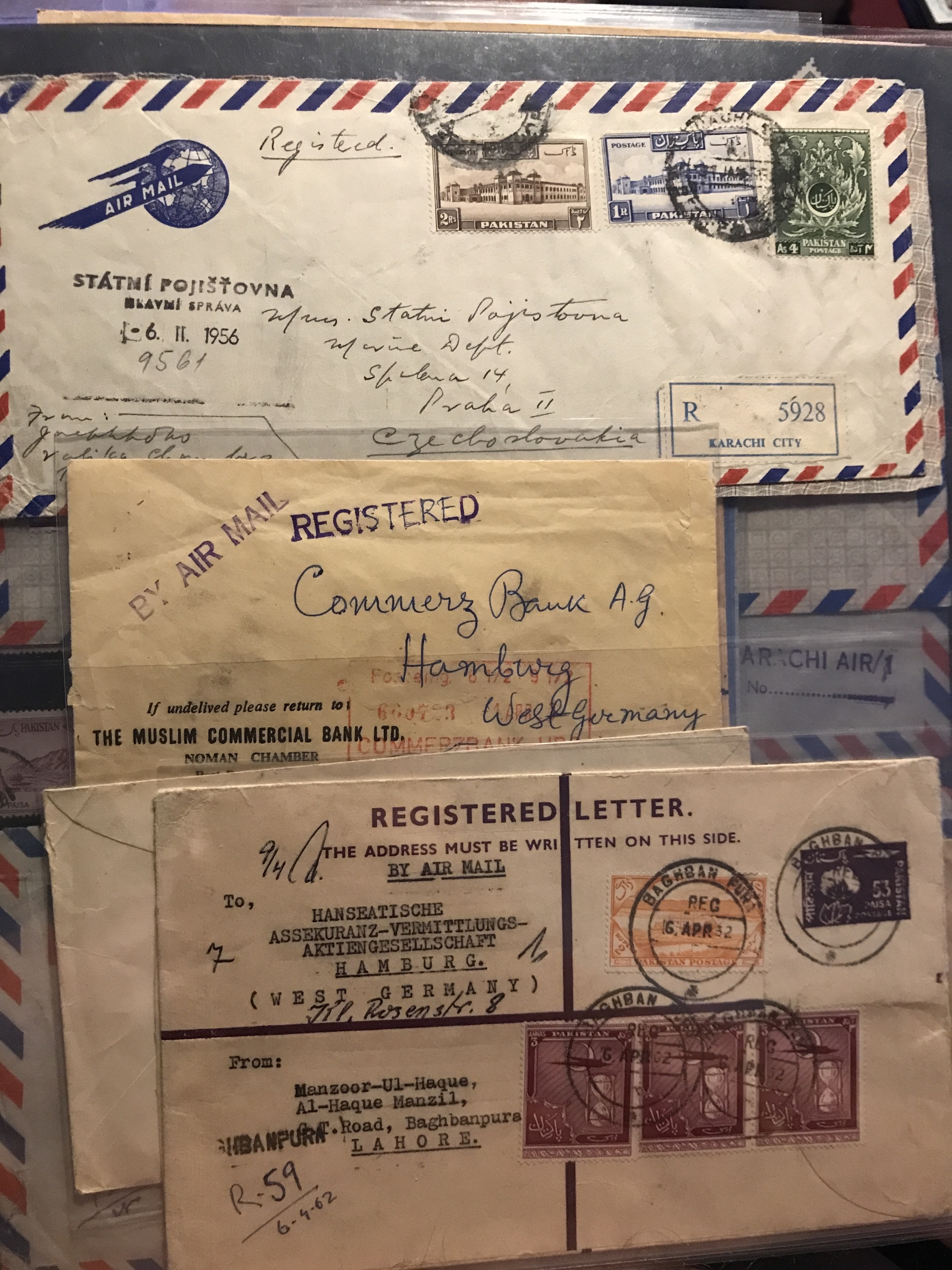 Pakistan. Miscellaneous. Coll./accumulation Pakistan & Bangladesh 1947–ca. 1990 in three SAFE binders incl. many used stamps and about 265 covers (some cards). Please see a selection of scans at www.philea.se. Approx. 6 kg.