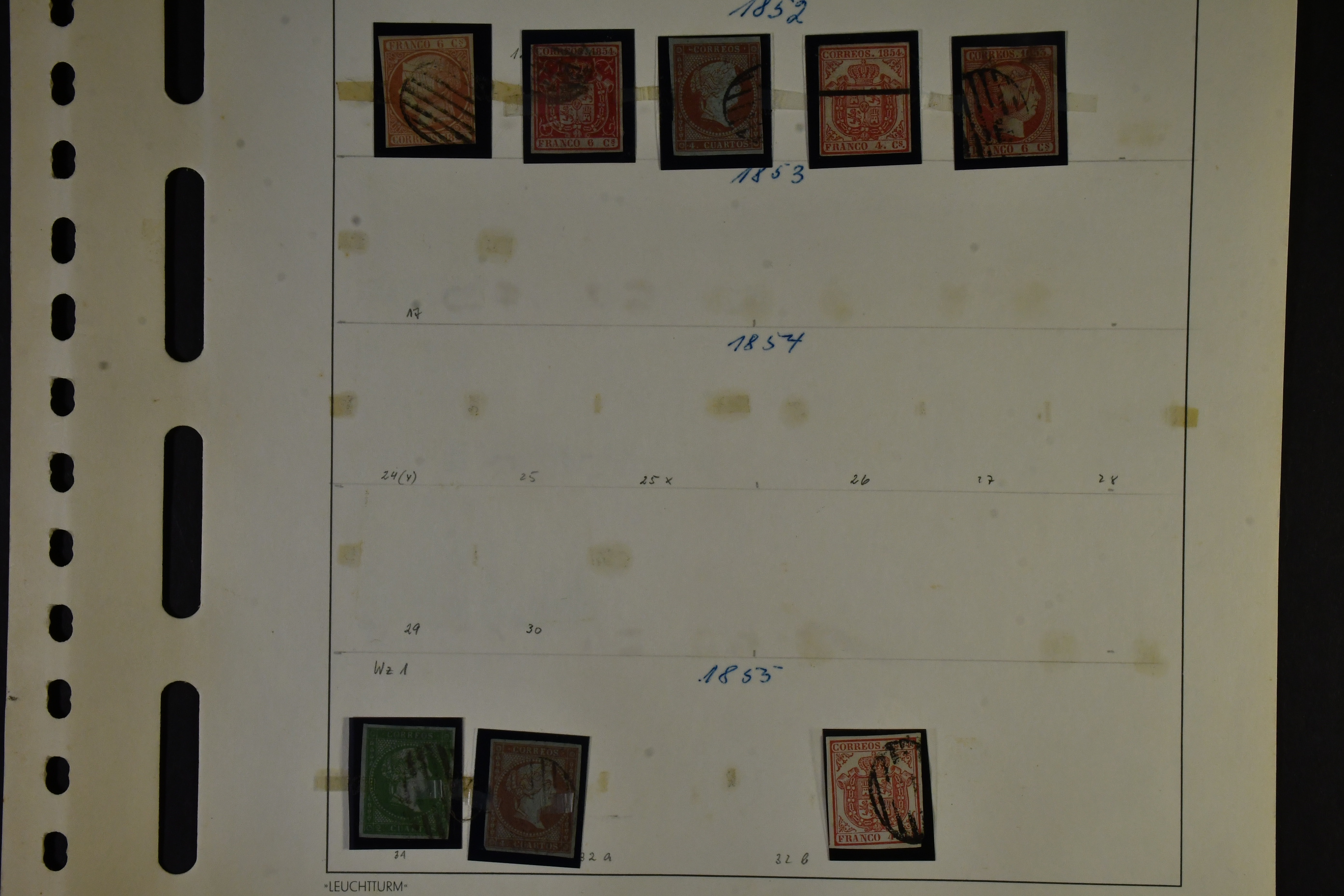 Spain. Collection used 1852–1922 on leaves Mostly good quality.