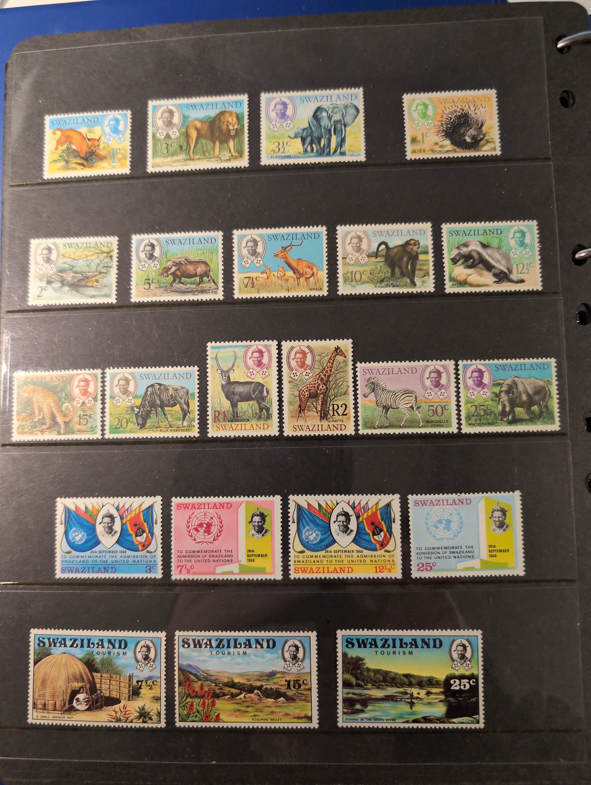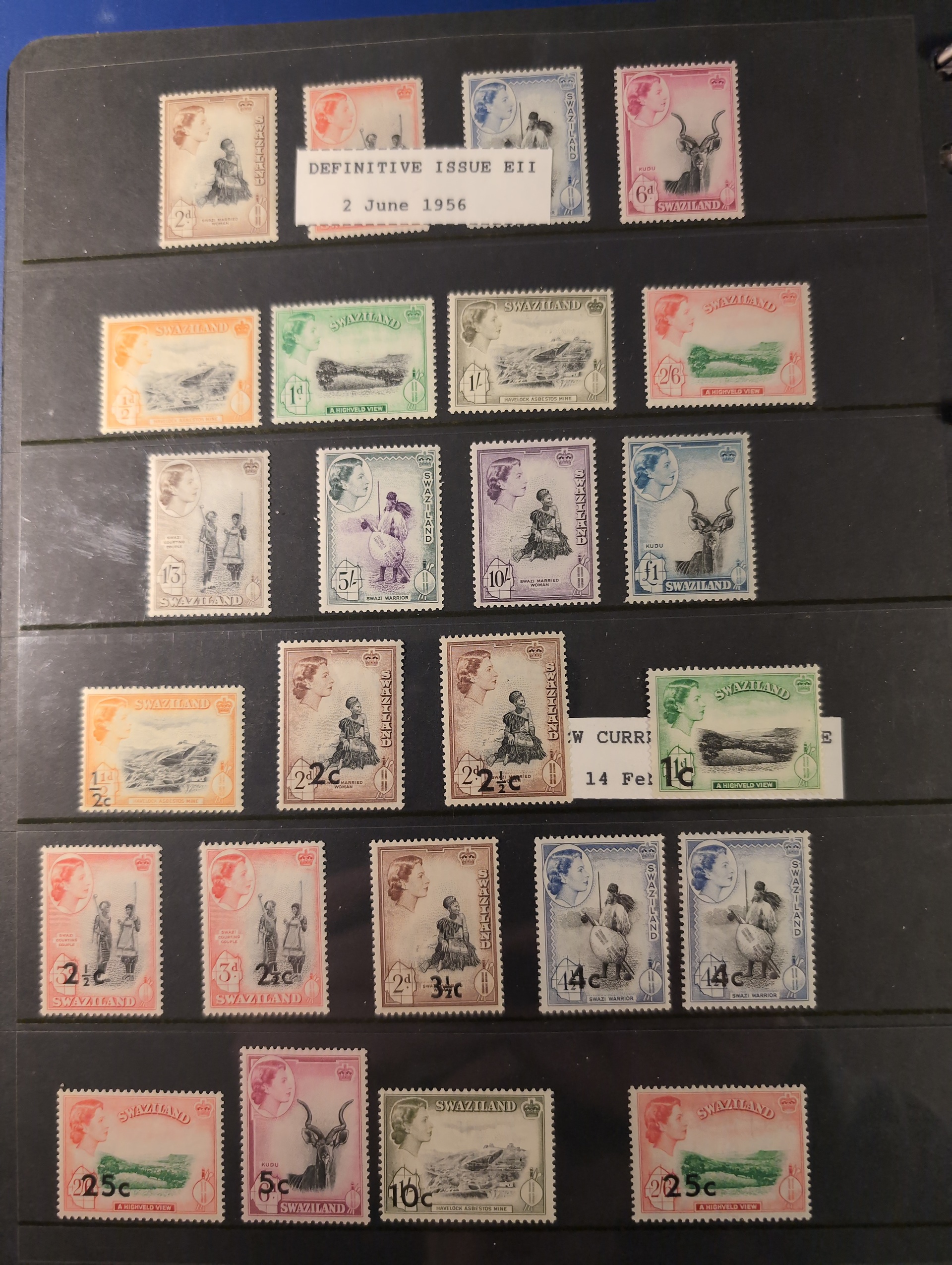 Swaziland. Collection ★★/★/⊙ 1935–1970s in visir album. incl RSW mnh, many QEII defin sets most of them MNH. Please see a selection of scans at www.philea.se. Good quality. (ca. 150)