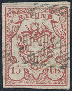 Switzerland. Michel 11 used, 1852 RAYON III 15 C dark orange. Creased. EUR 950