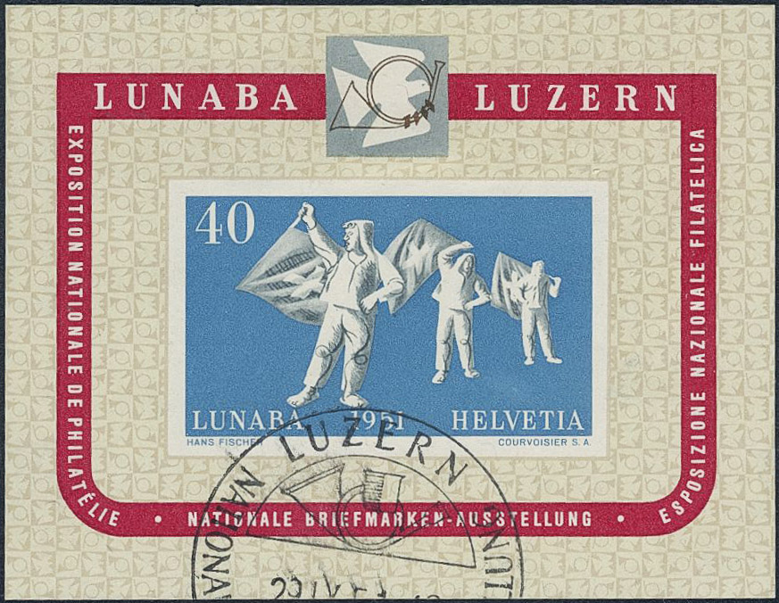 Switzerland. Michel 560 used, 1951 LUNABA Exhibition souvenir sheet 14. EUR 200