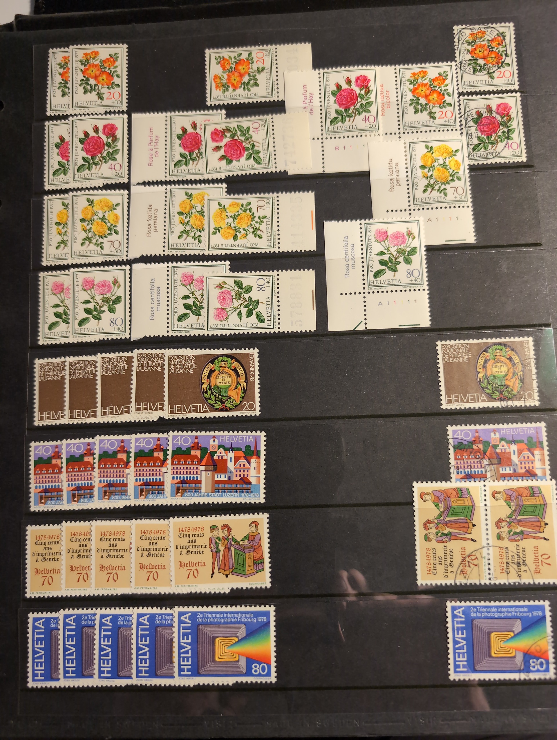 Switzerland. Collection/accumulation ★★ 1970s–1990s in visir album with up to six stamps of each value incl. M/S and some CTO. Face value CHF900+. Fine quality. (1000+)