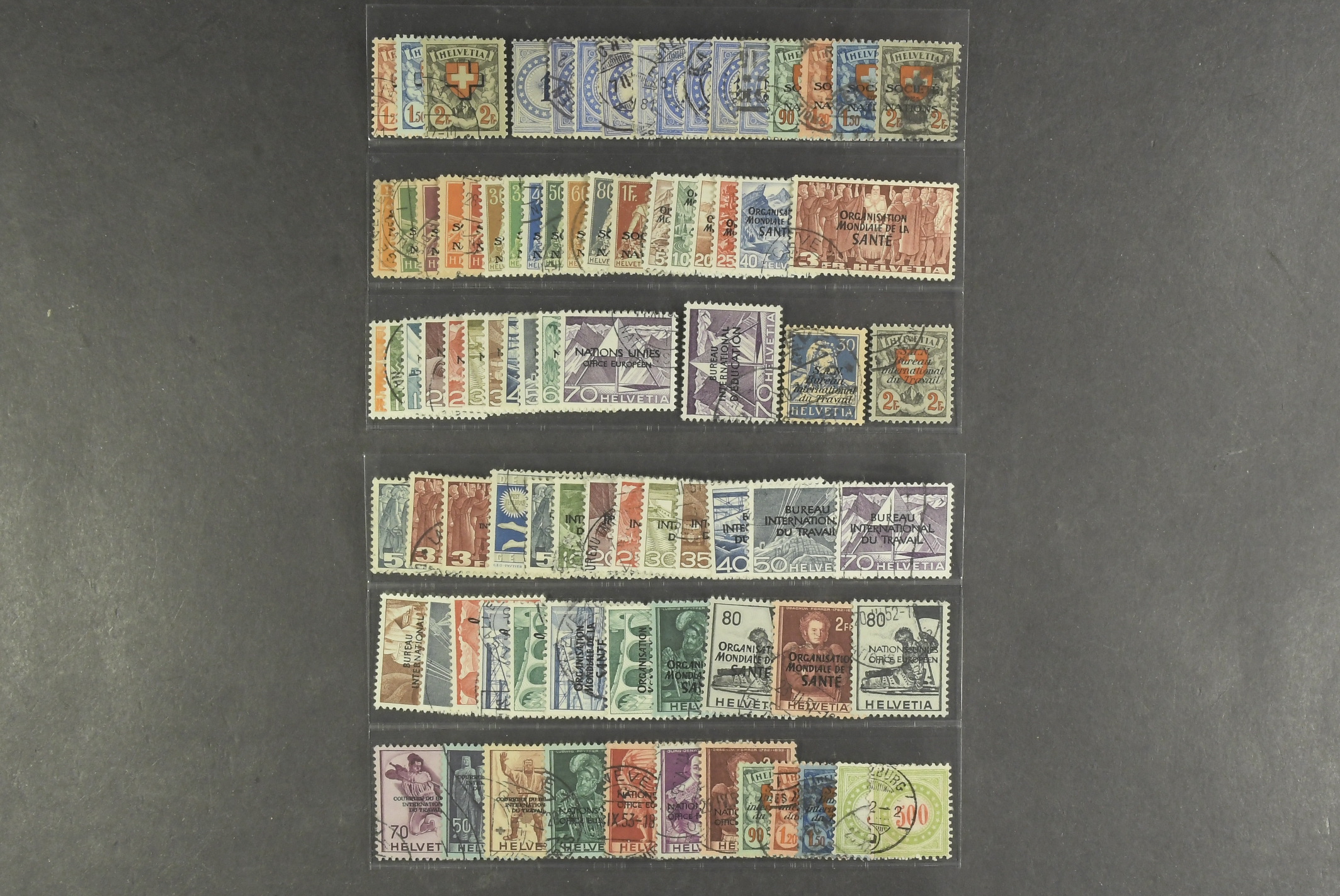 Switzerland. Used 1878–1950. Back-of-the-book. All different, e.g. Mi officials 43–45, postage due 1–9, SDN 1–12x, 22–25x, OMS 1–5, 23, ONU 1–11, BIE 39, BIT 5x, 71–73, 87–91, 93. Mostly good quality. Mi € 871 (84)