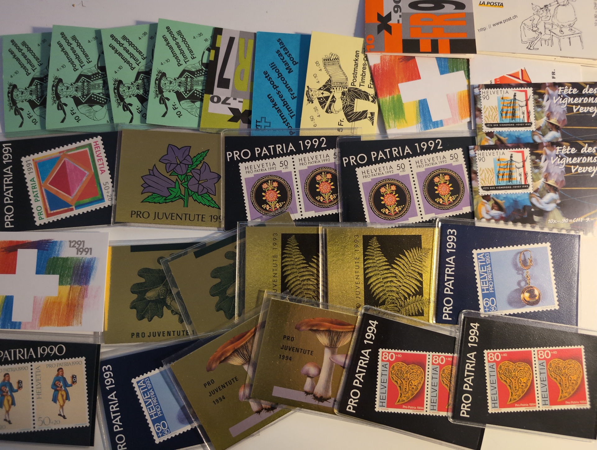 Switzerland. Booklets, lot 1982–1999. Mostly two of each with face value CHF 433. (63)