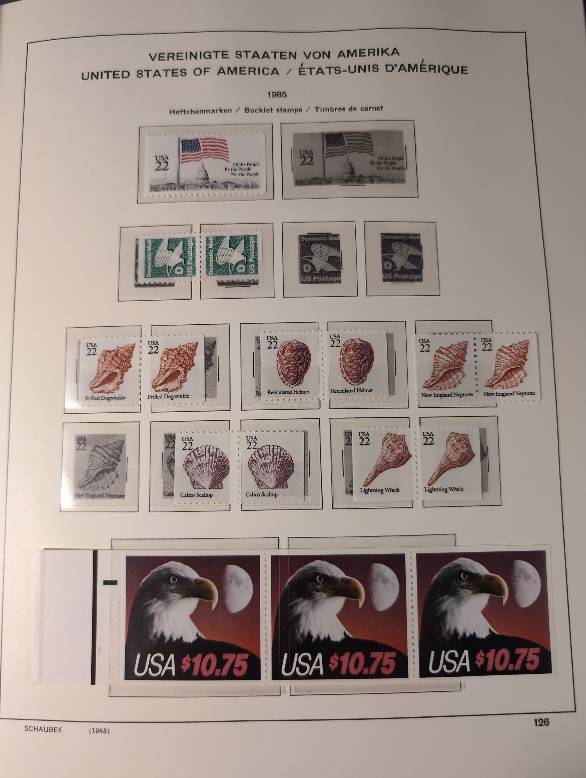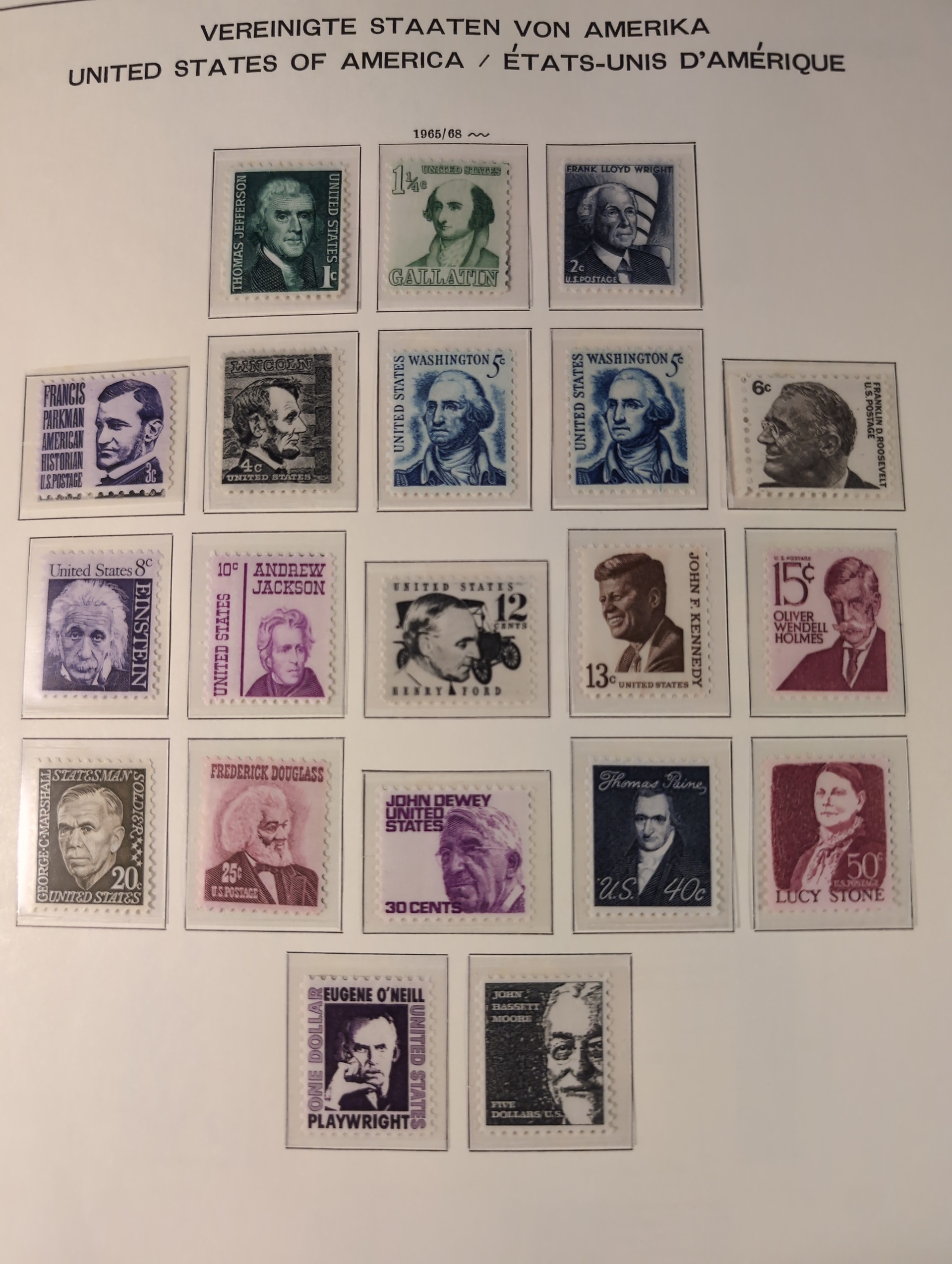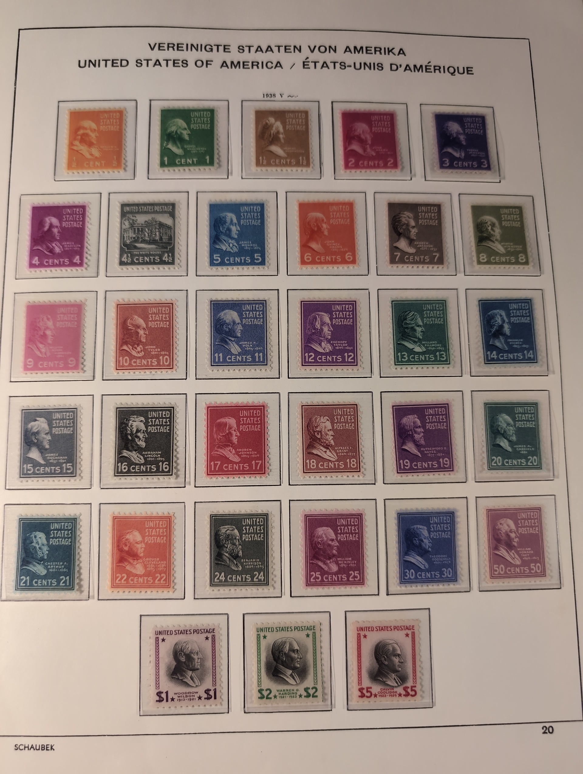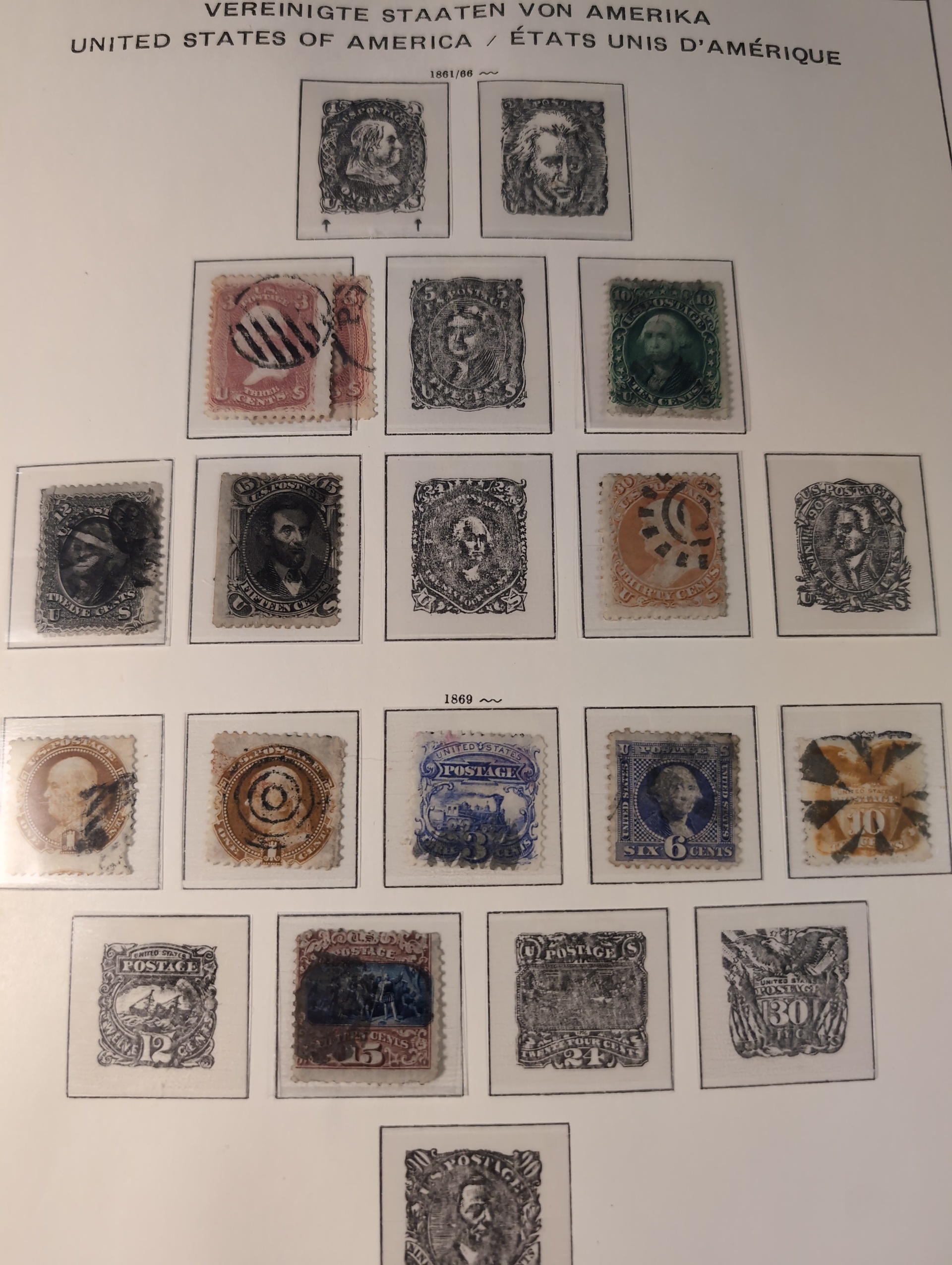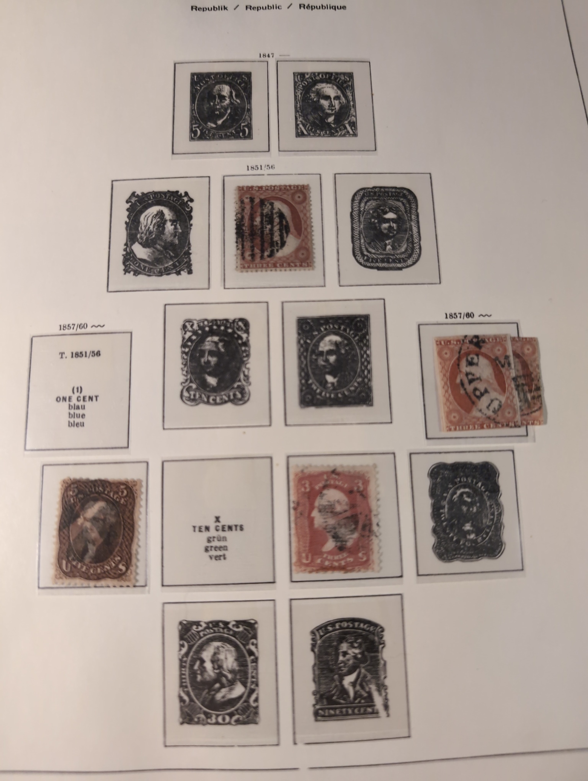 U.S.A. Collection ★★/★/⊙ 1851–1990 in box. Three Schaubek albums with mounts. Early part in mixed condition with a few better stamps, from 1900 more well filled with some mint and from ca. 1930 mostly Mint NH. incl some better sets e.g. 1938 presidents. Modern part with face value $200+. Please see a selection of scans at www.philea.se. Mostly fine quality. Approx. 8 kg. (1000+)