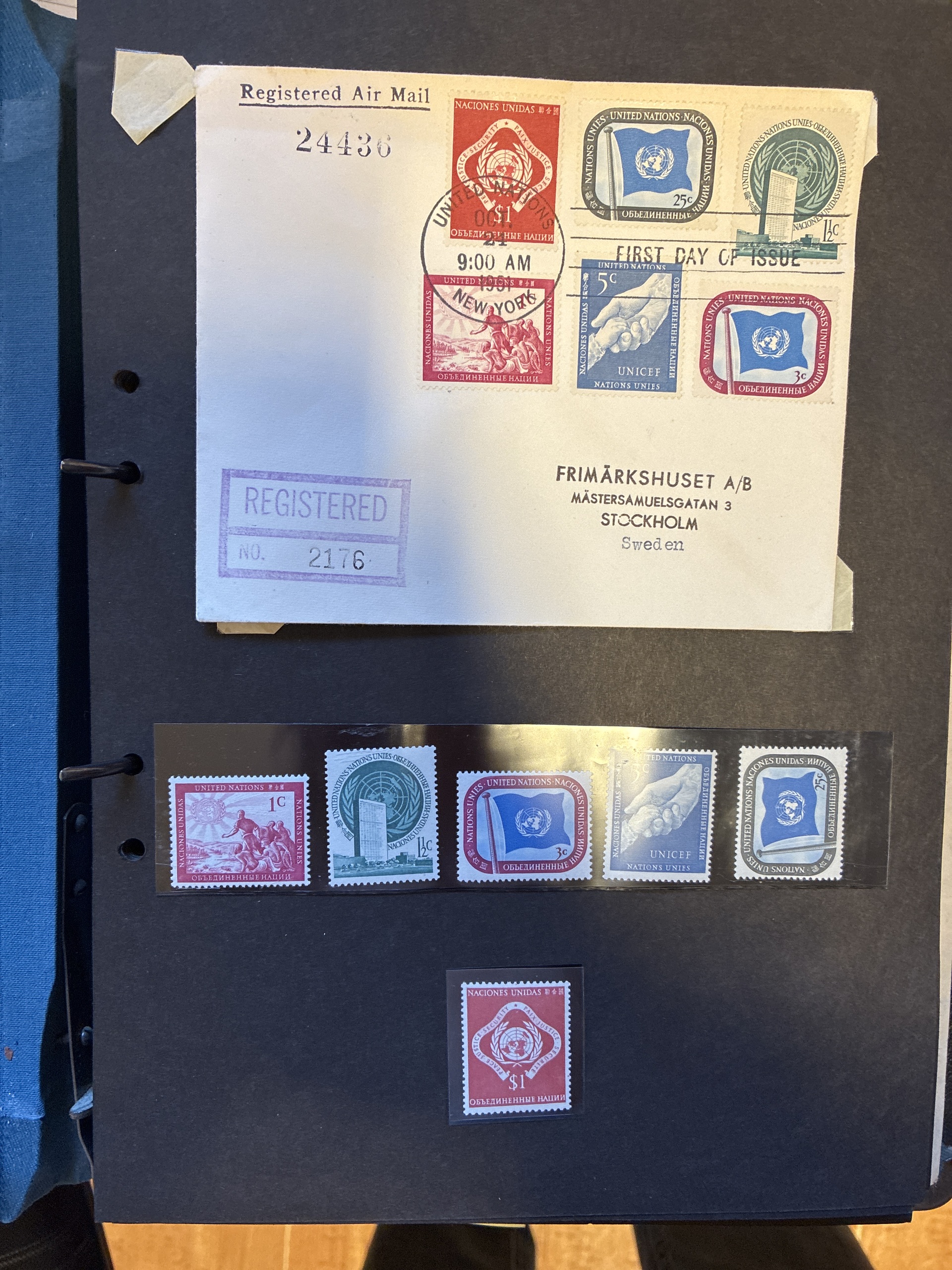 United Nations, mixed. Collection ★★ 1951–1983 in box. Twelve albums with ** and FDC. Please see a selection of scans at www.philea.se. Good quality. Approx. 22 kg.