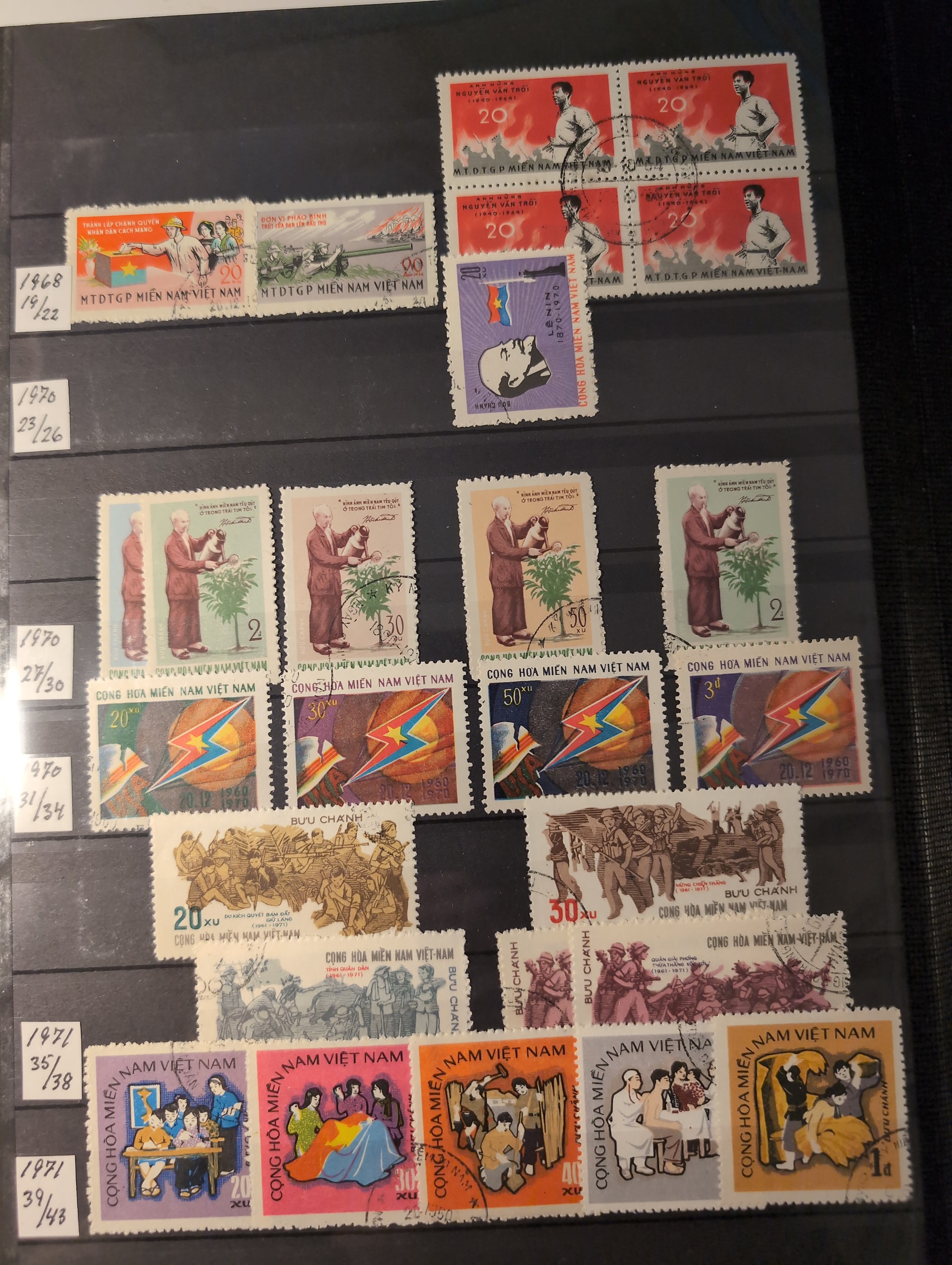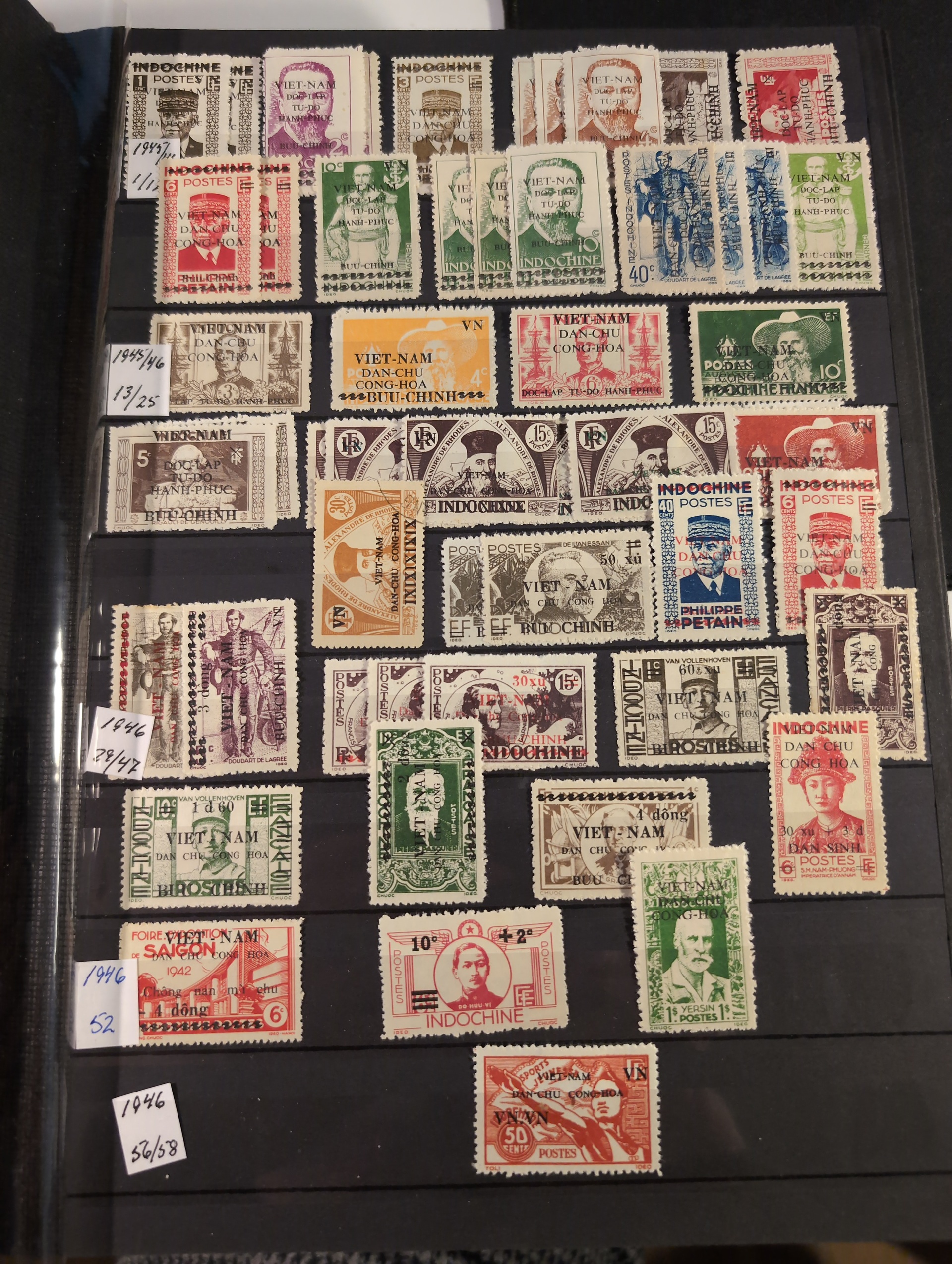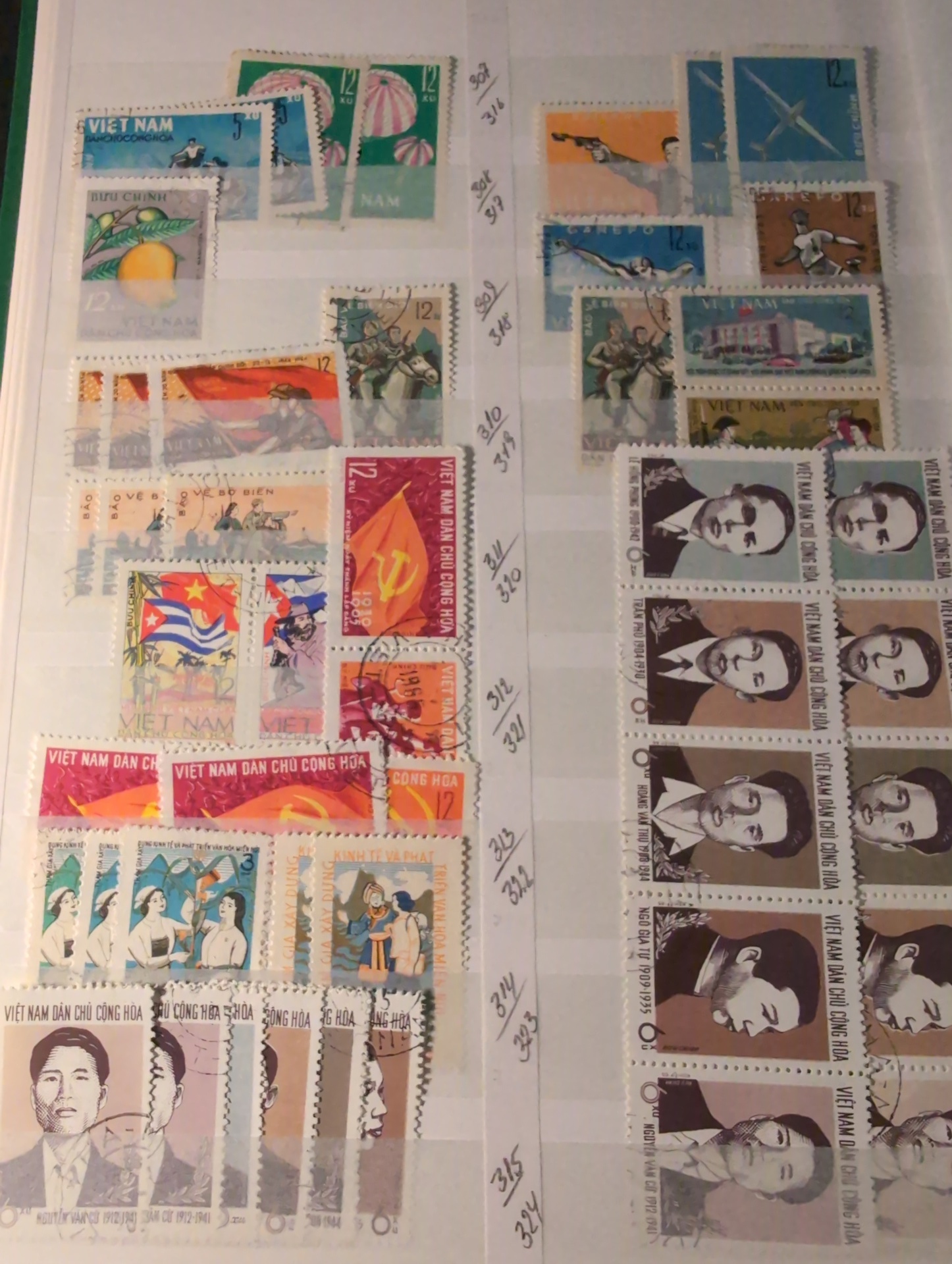 Vietnam. Collection ★★/★/⊙ 1892–ca. 1993 in box. Three thick stockbooks. Starts with Indochine incl. a few better mixed mint and used. South Vietnam mostly used and comprehensive North Vietnam mostly used. Included is Scott catalog pages. Please see a selection of scans at www.philea.se. Mostly fine quality. Approx. 7 kg. (1000s)
