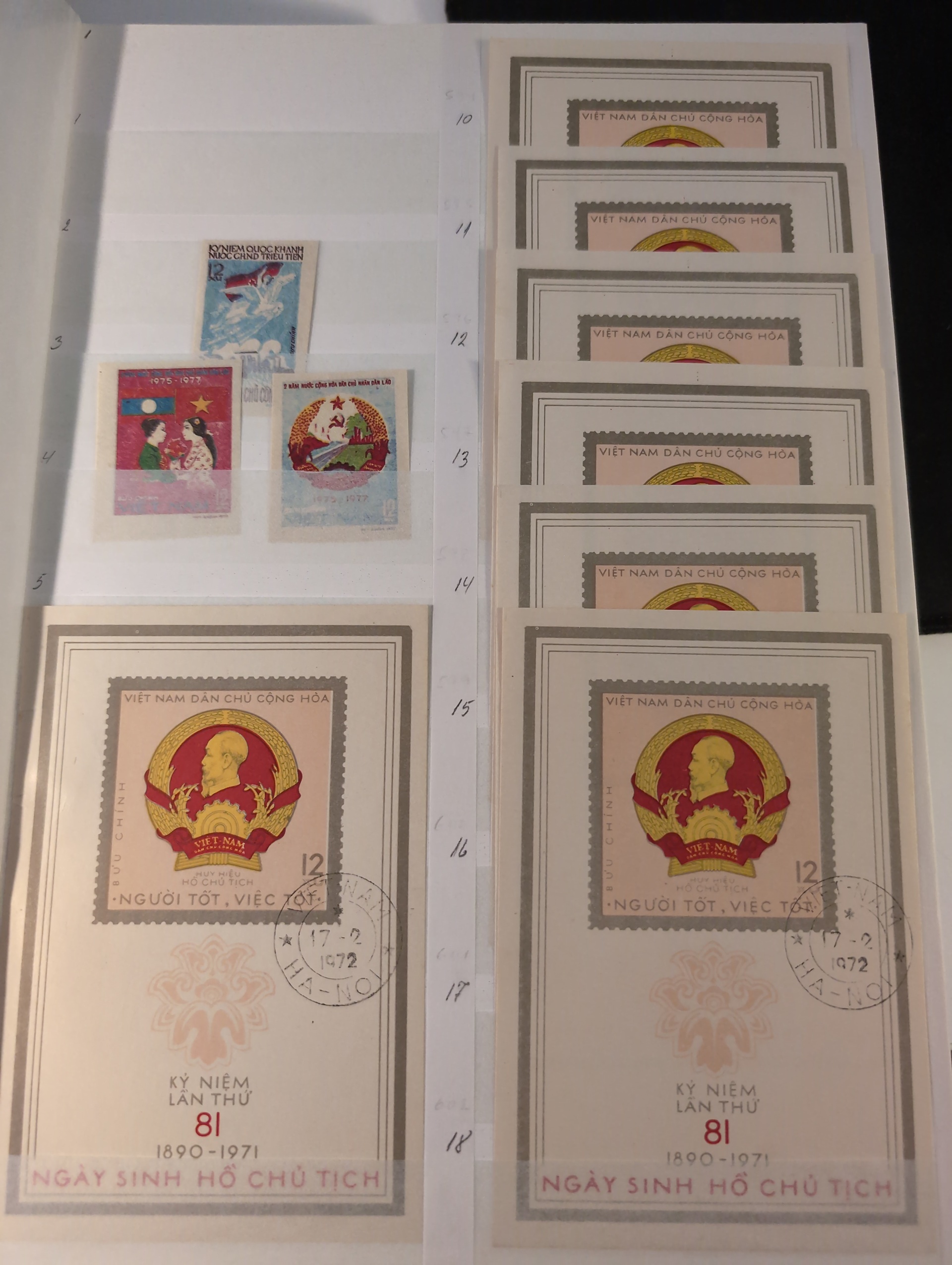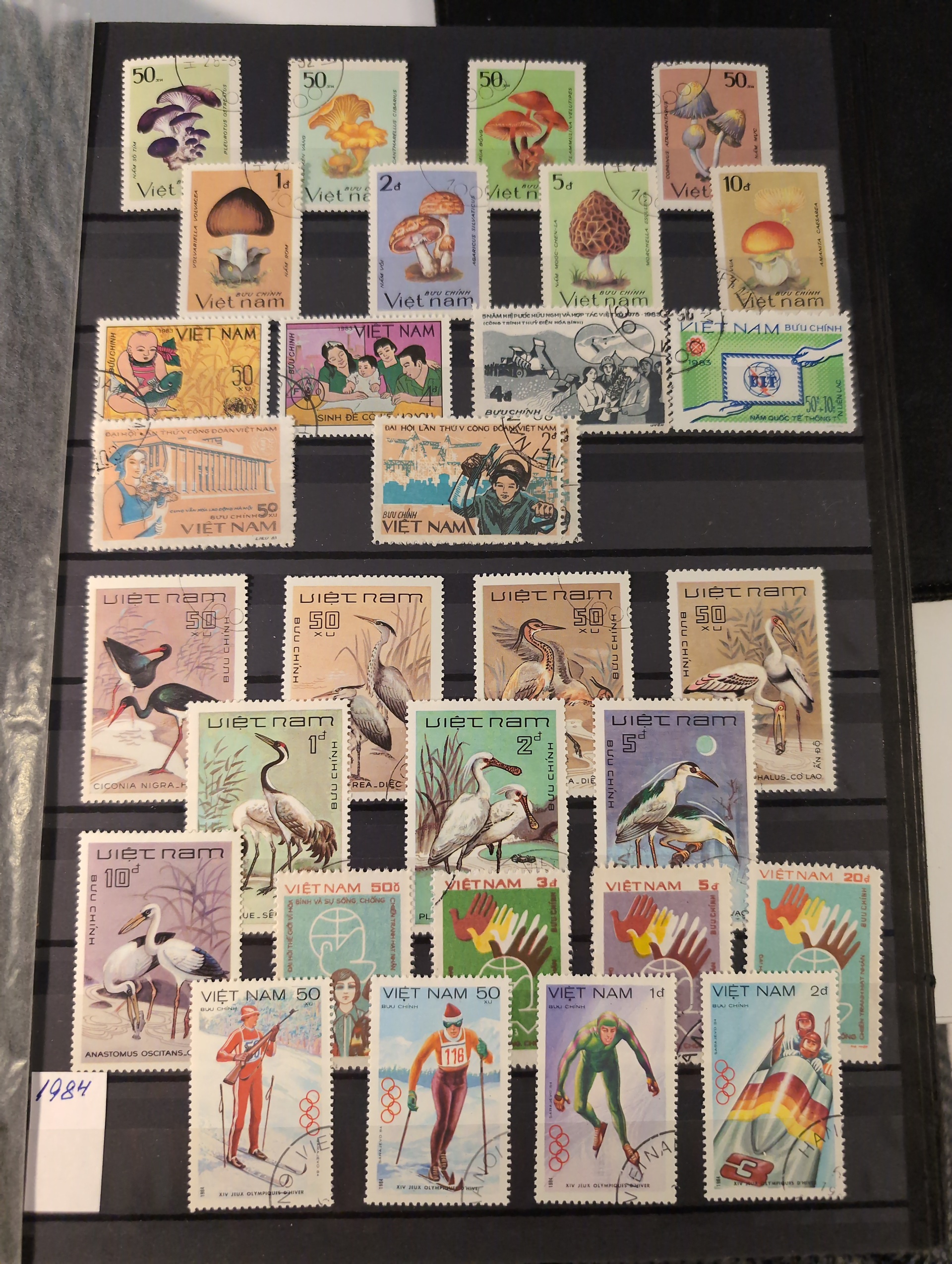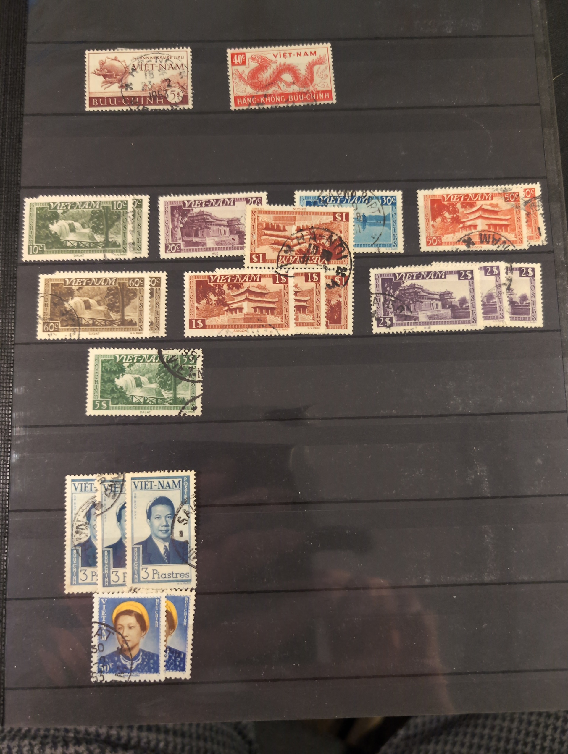 Vietnam. Collection ★★/★/⊙ 1892–ca. 1993 in box. Three thick stockbooks. Starts with Indochine incl. a few better mixed mint and used. South Vietnam mostly used and comprehensive North Vietnam mostly used. Included is Scott catalog pages. Please see a selection of scans at www.philea.se. Mostly fine quality. Approx. 7 kg. (1000s)