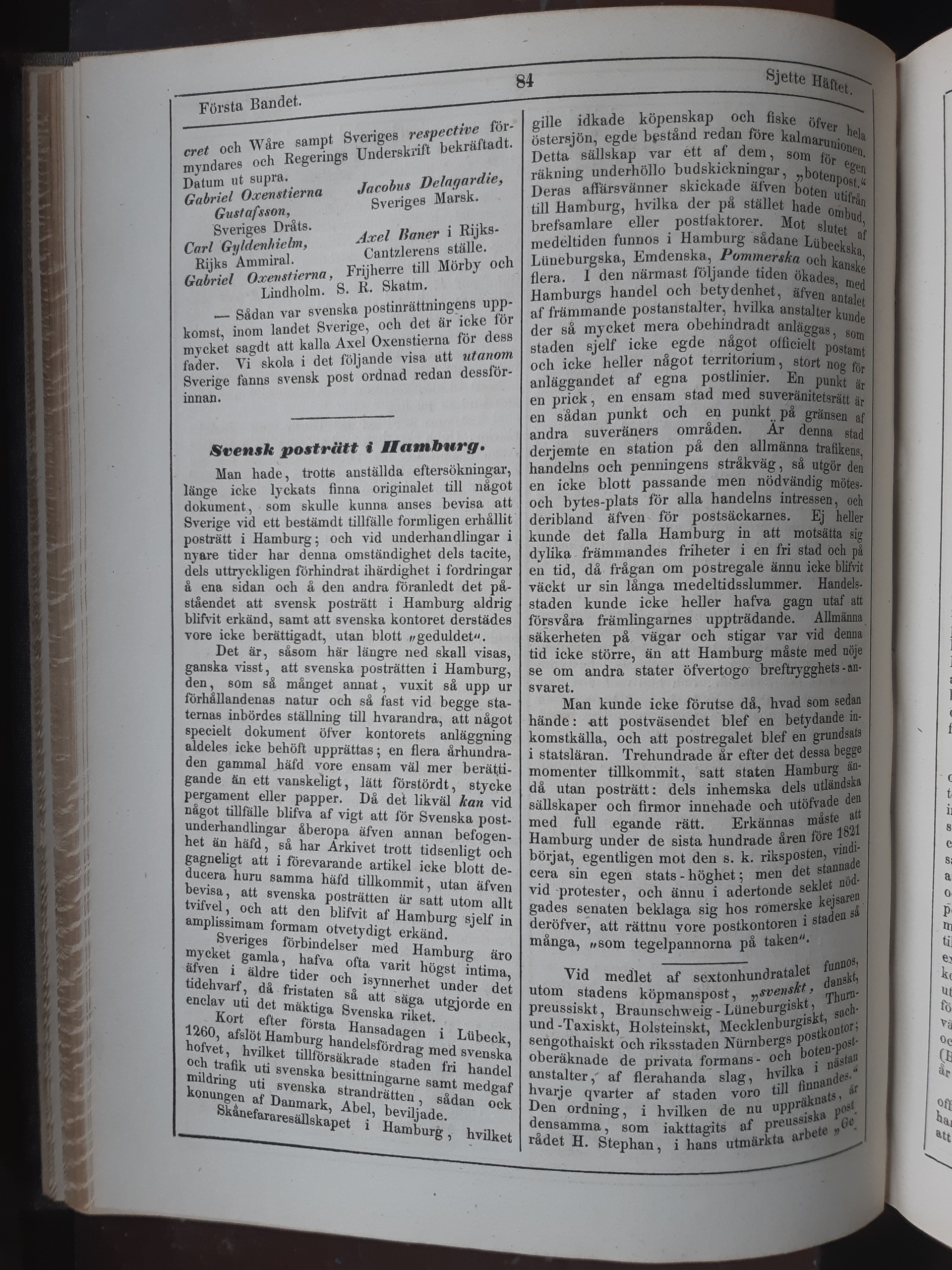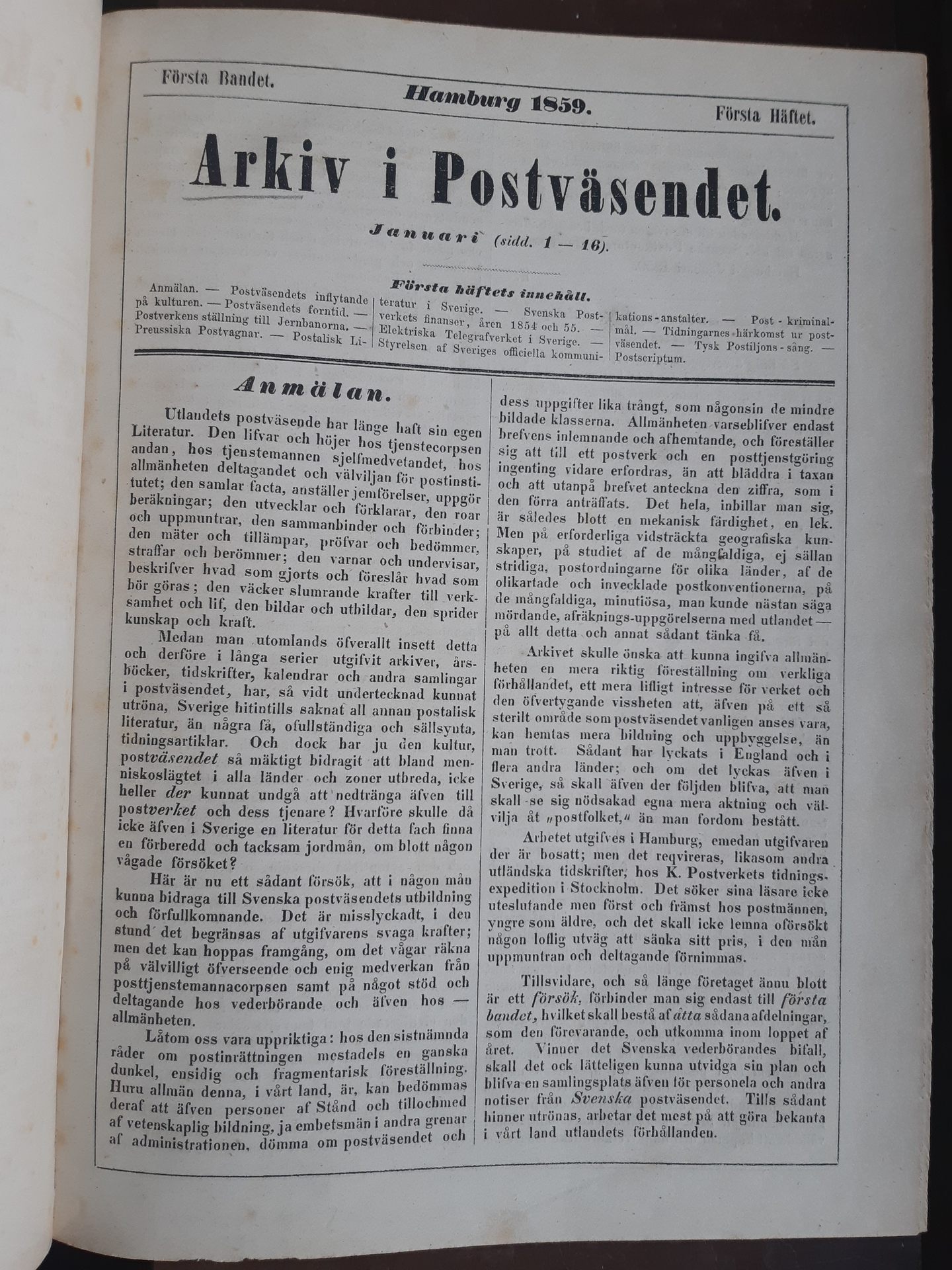 Literature. Hellberg, J. C., 'Arkiv i postväsendet', first and second volume, cpl. in hardbound edition, 256 pp. Many useful and interesting articles. Used.