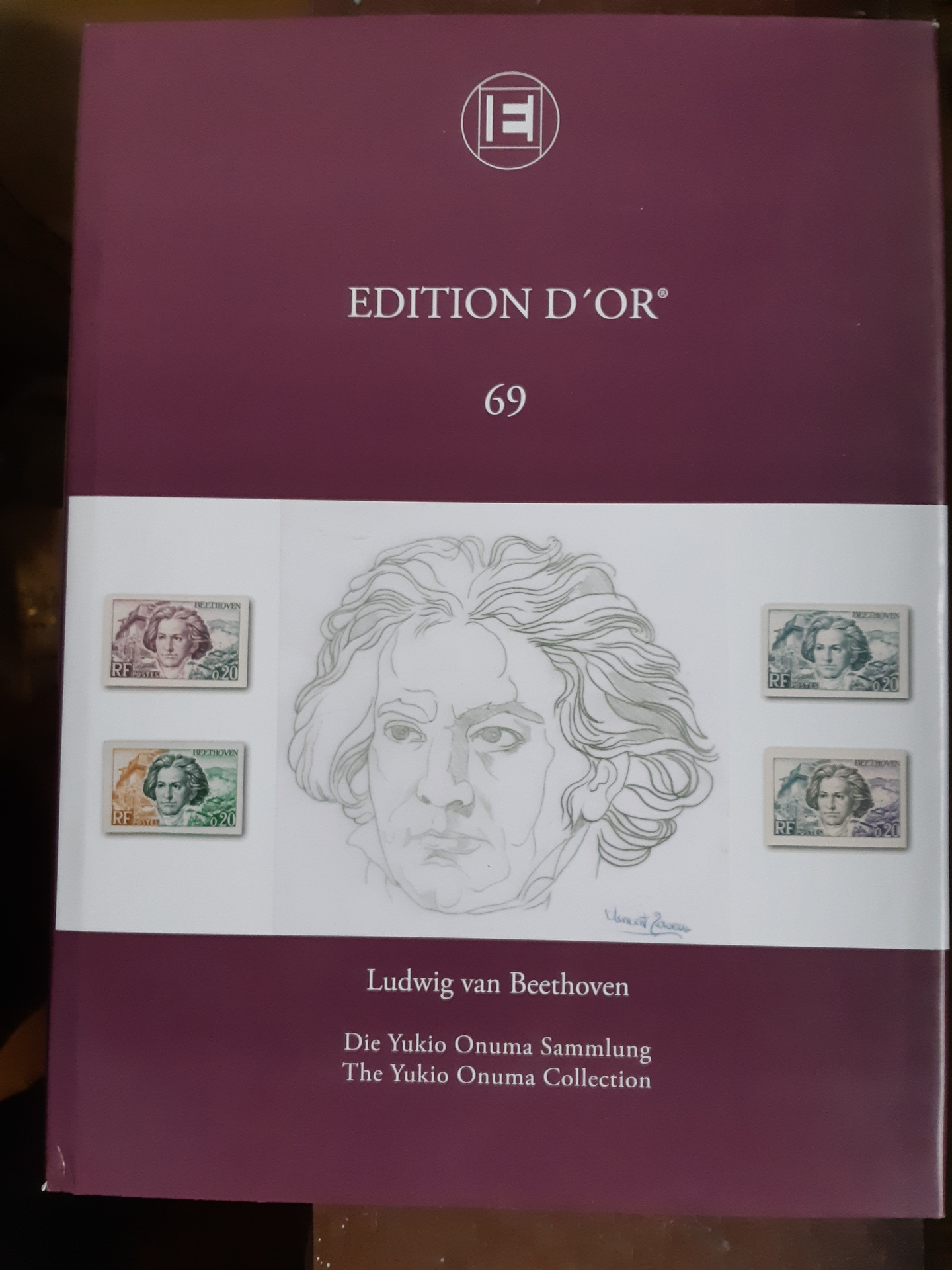 Literature, MOTIV, Music. EDITION D'OR, Vol. 69 'Ludwig van Beethoven – The Yukio Onuma Collection', The Global Philatelic Network, 2023. The Large Gold awarded exhibit depicted in its entirety, hardcover, with dust jacket (slightly worn), 164 pp., English. Used.