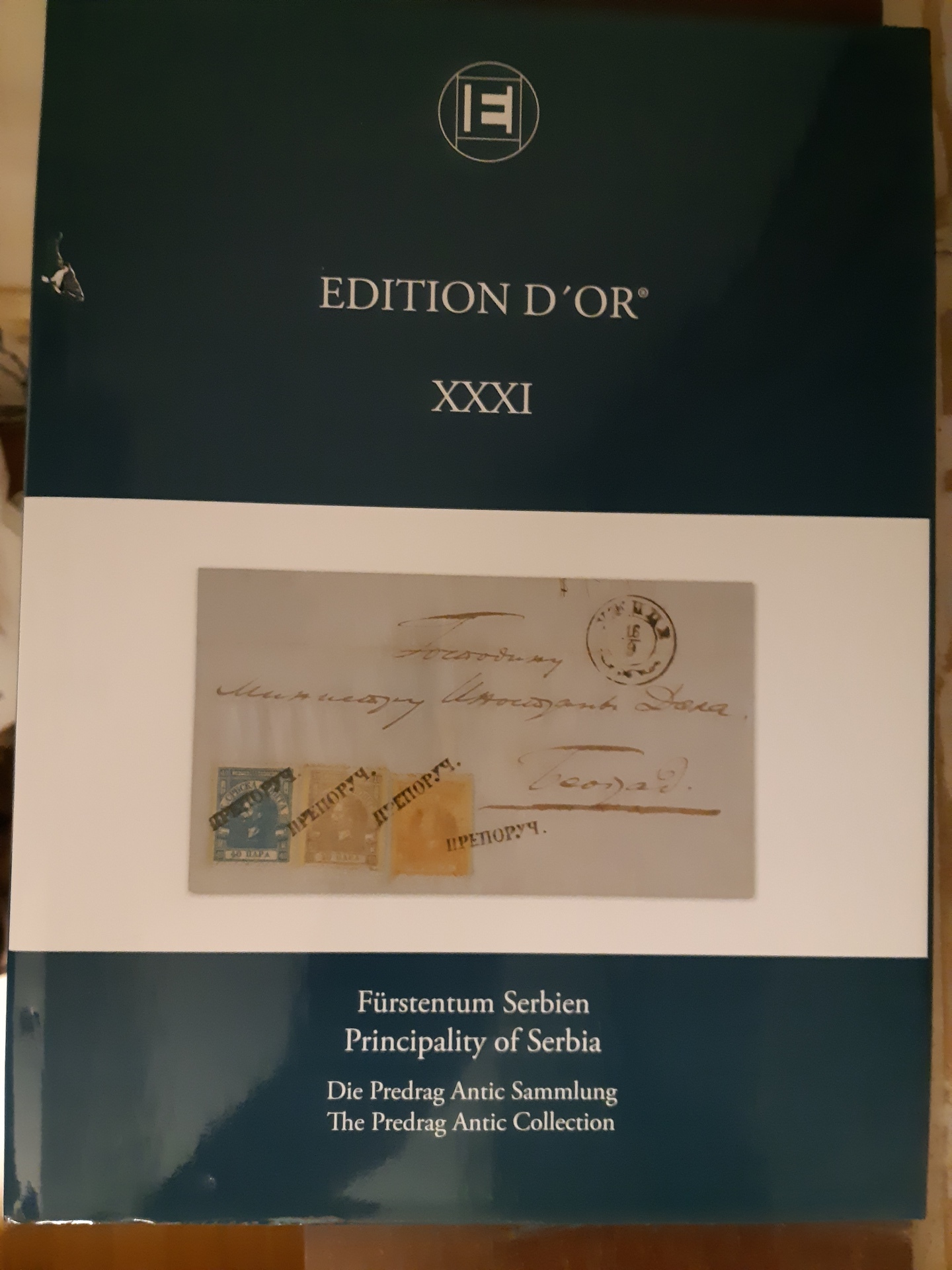 Literature. EDITION D'OR, Vol. XXXI 'Principality of Serbia – The Predag Antic Collection', The Global Philatelic Network, 2012. The Large Gold awarded exhibit depicted in its entirety, hardcover, with dust jacket (small tear), 186 pp., English. Used. Signed by the author.