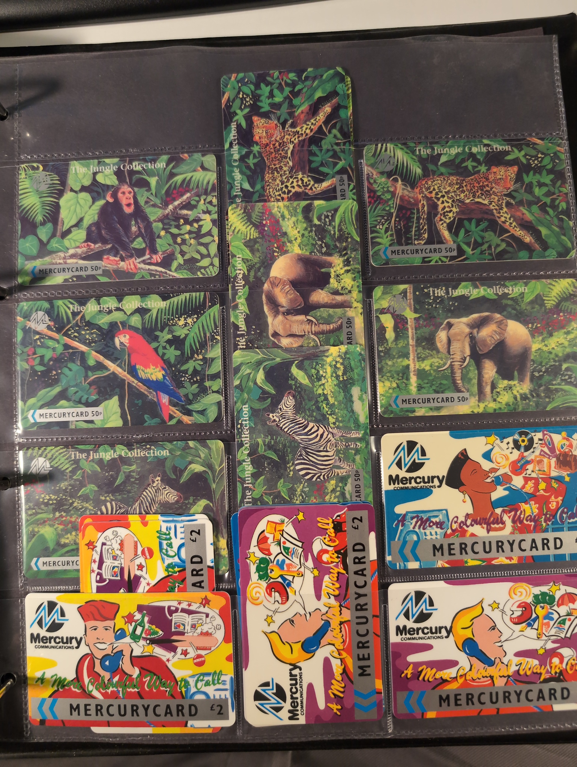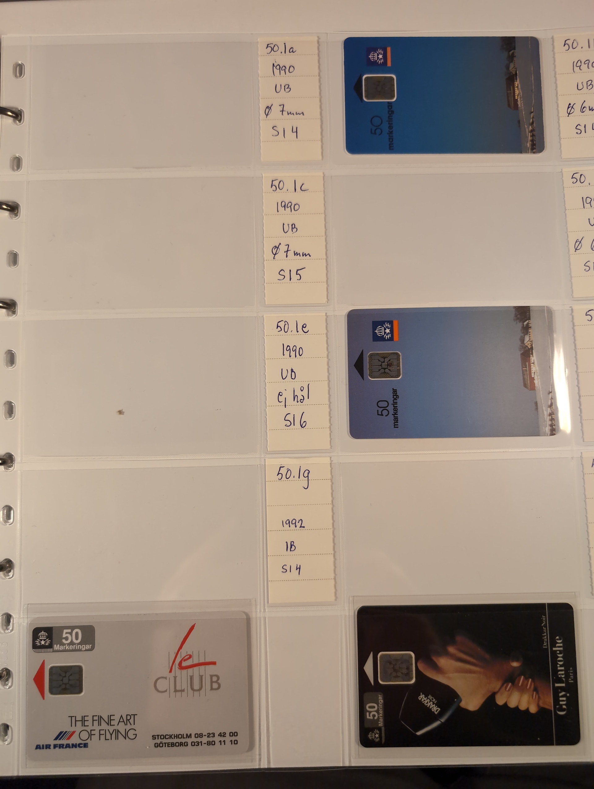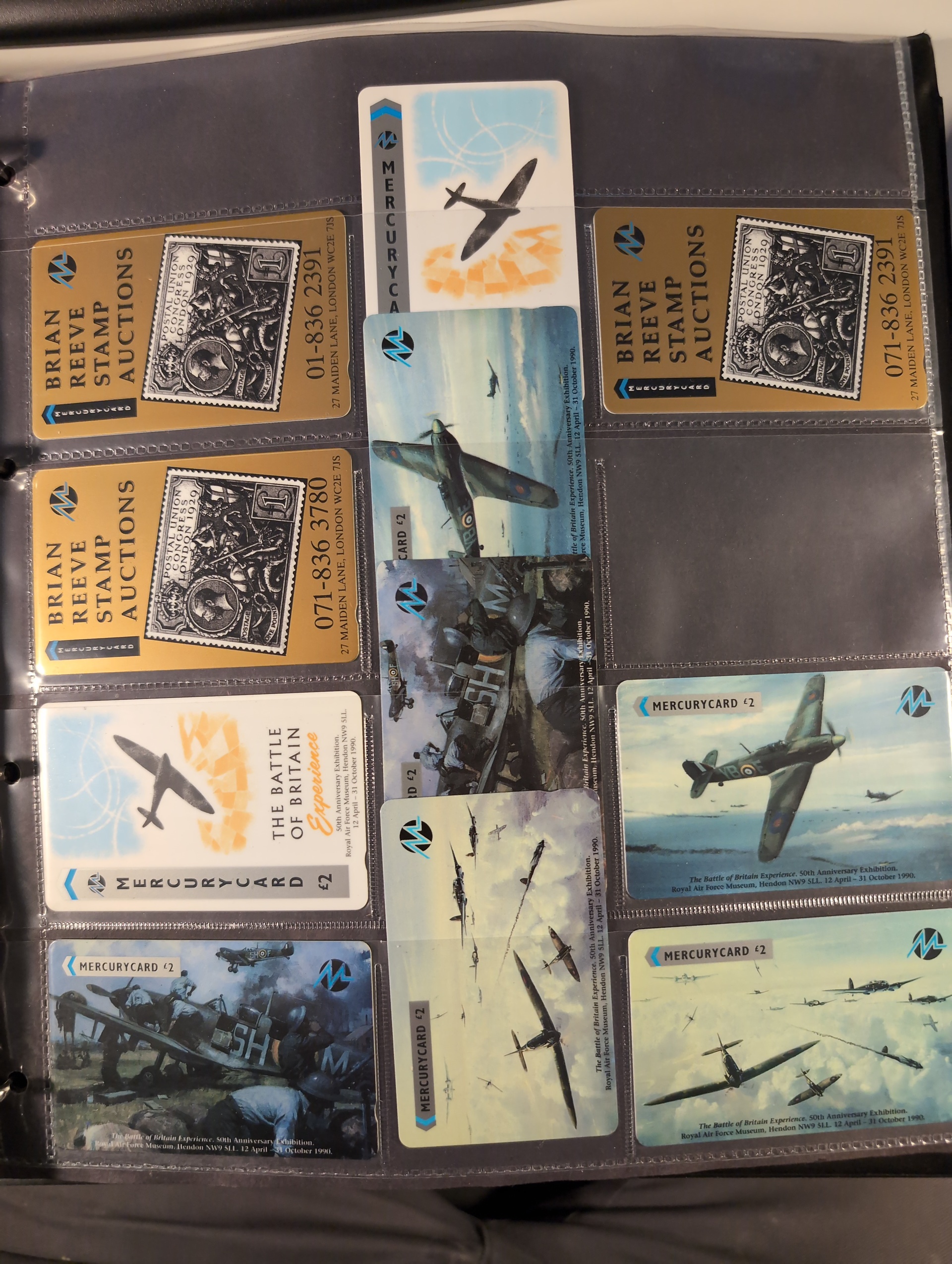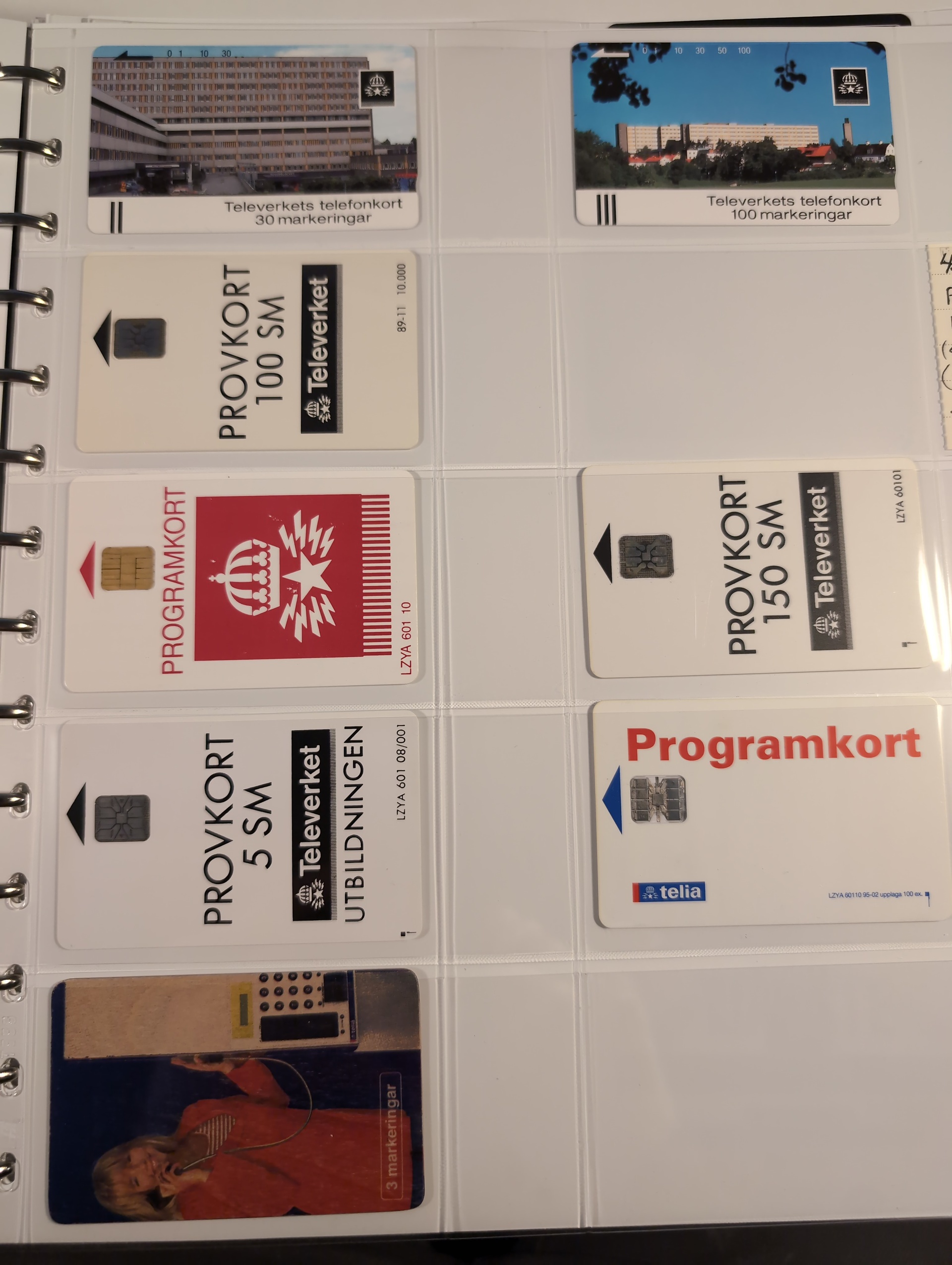 Telephone cards, ALL WORLD. Well filled collection, Sweden in seven albums and three foreign. mostly mint with many premium and promotion cards e.g. Spaceman, Gothenburg Santa, early magnetic cards (some used) e.g. Uppsala and Regiment cards. There is also a card reader included. Among the foreign cards we can mention one leadger with British Mercury Cards. In addition there are two boxes with duplicates (about 200 cards). In total over 1000 cards. Approx. 31 kg.