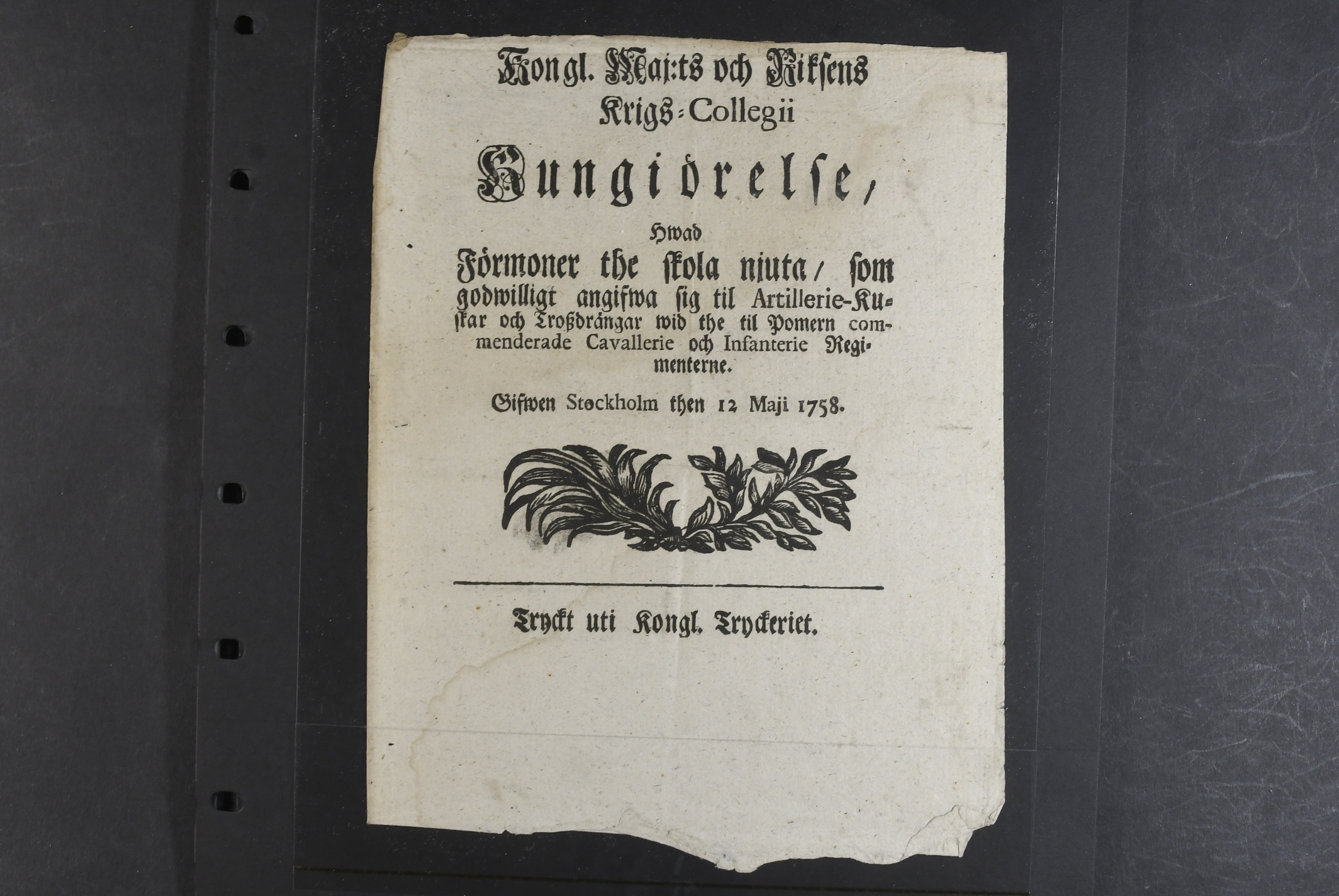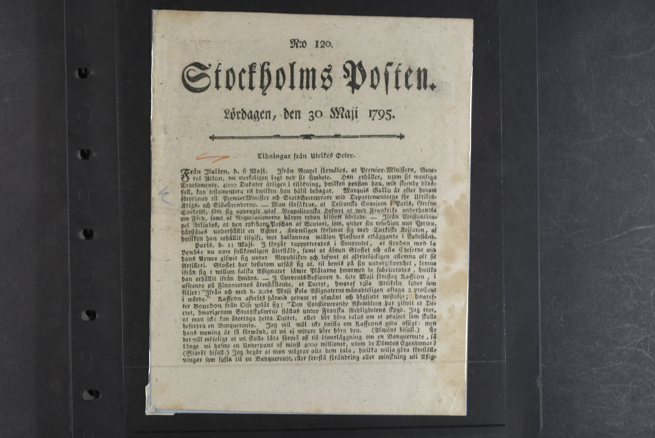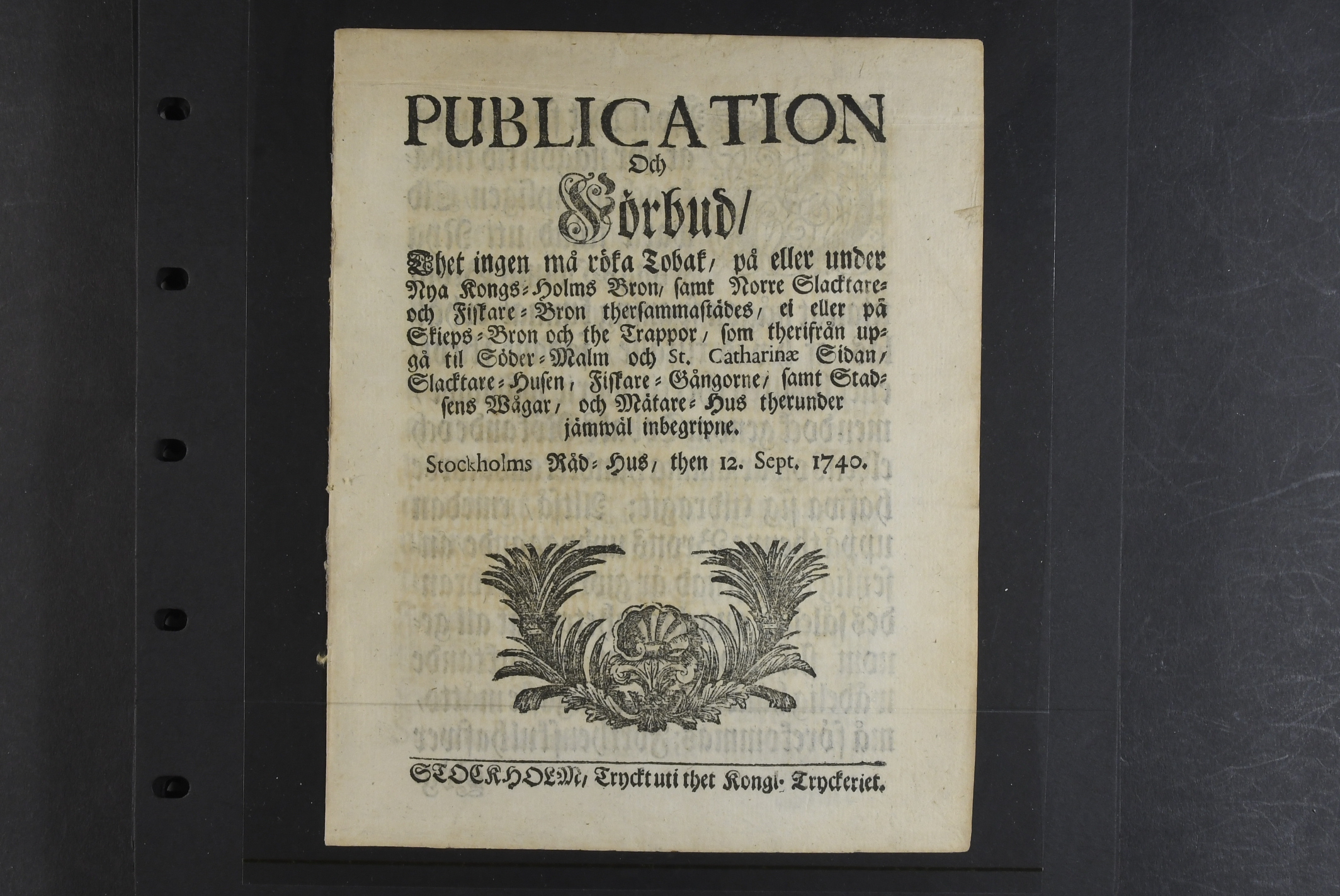 Proclamations, Sweden. Announcements, eight different 1647–1763 incl. one hand-written, plus three numbers of 'Stockholmsposten 1795–1814. The entire lot is presented at www.philea.se.