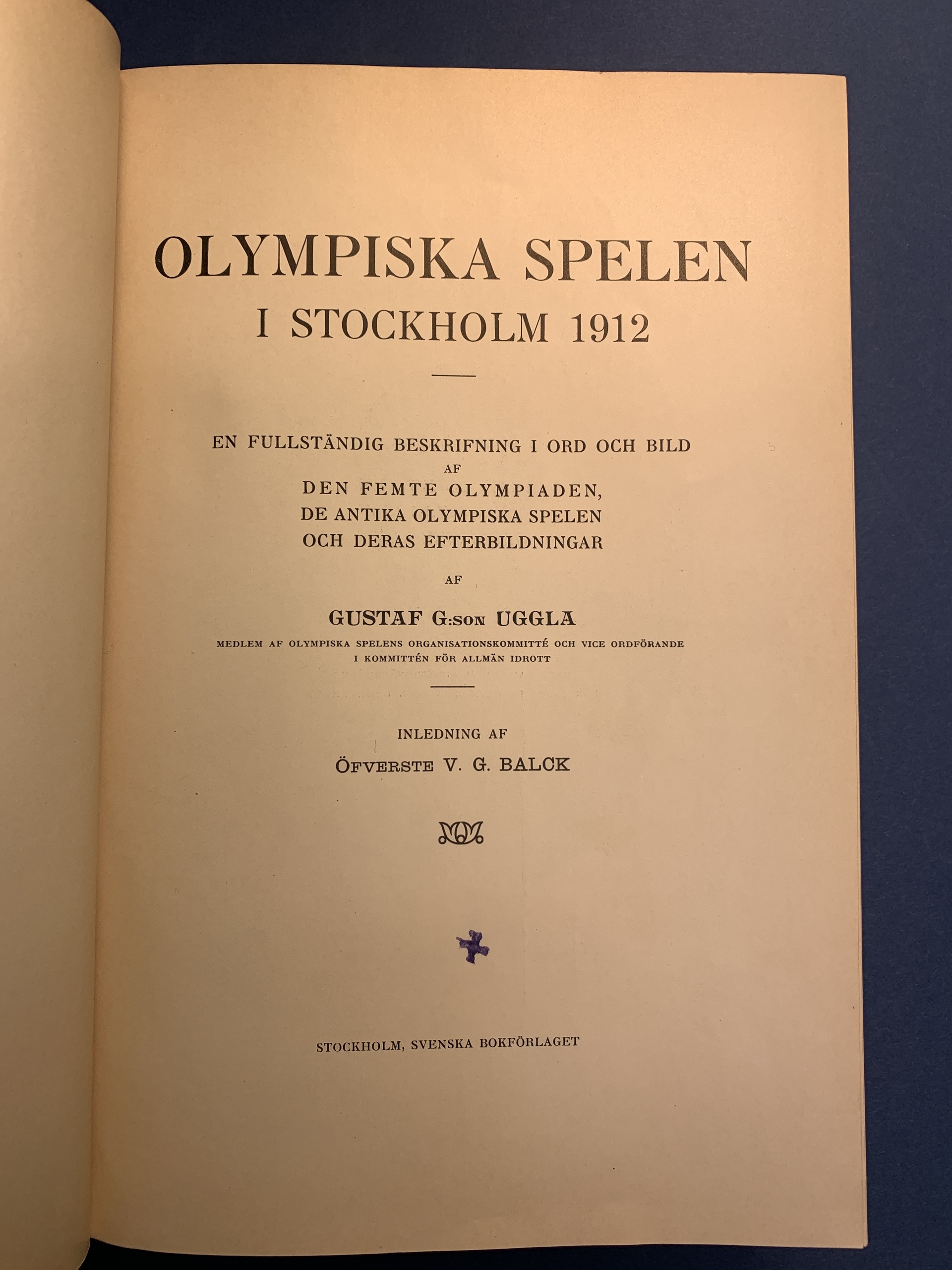 Olympic paraphernalia, Sweden. 'OLYMPISKA SPELEN I STOCKHOLM 1912', by Gustaf G:son Uggla, Stockholm 1912. 725 pp. Unusually good condition!