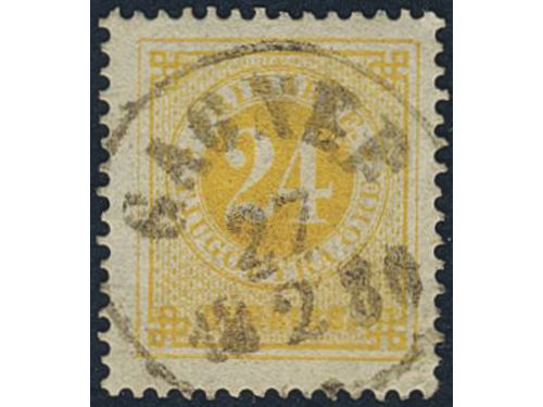 Sweden. Facit 5b used, 24 skill orange-red, thin paper. Canc. STOCKHOLM 7.11.1856. Def. corner and short perf. Cert. Lasse Nielsen. SEK 18000 Show less