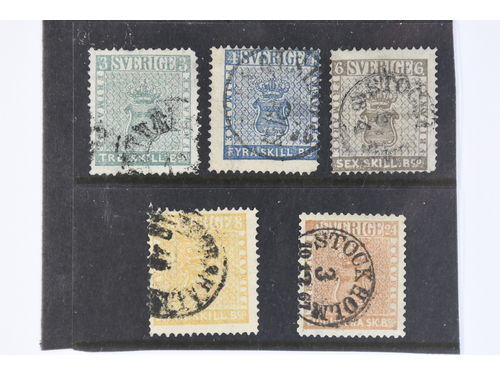 Sweden. Used 1862–1876. All different, e.g. F 15, 18, 20, 24, 25c (cert. HOW), 26–27. Mostly good quality. F SEK (13)