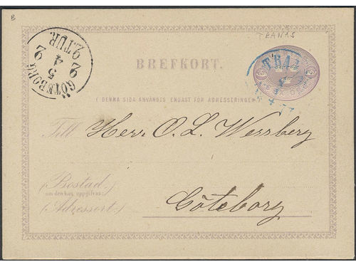 Sweden. Facit bKe2, F county. TRANÅS 4.4.1877. Cancel in blue colour. Very scarce, RR (= 1–2 recorded) according to SSPD. Sweden. Facit bKe2, F county. TRANÅS 4.4.1877. Cancel in blue colour. Very scarce, RR (= 1–2 recorded) according to SSPD. Show less
