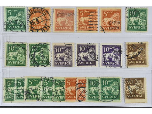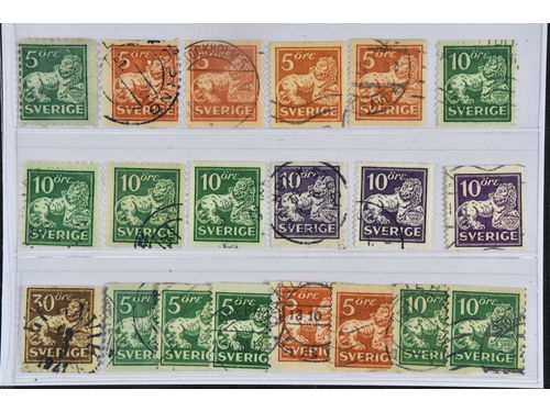 Sweden. Used 1920–34. Standing Lions. All different, e.g. F 140Ccx, 141a, 141bz, 142Abz, 142Ed+Ecc, 144Acc+cz, 144Cbz+Ccx. Mostly good quality. F SEK 10785 (20) Show less