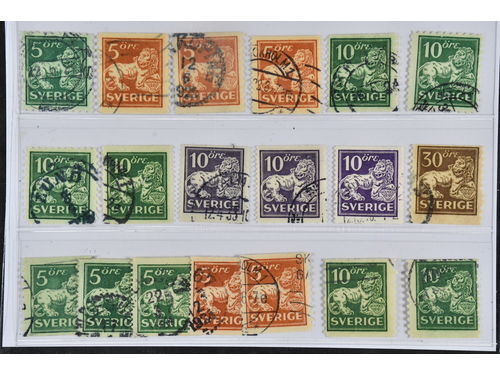 Sweden. Used 1920–34. Standing Lions. All different, e.g. F 140Ccx, 141bz, 142Abz+Ed, 144Acc+Cbz+Ccx+Ecx, 145E+Ecx, 146E, 148Acx. Mostly good quality. F SEK 7150 (19) Show less