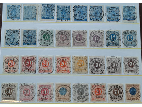 Sweden. Lot used 1880s–1940s. Previously unsold lots with original reserve 3000. The entire lot is presented at www.phil..