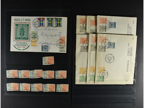 Sweden. Lot used 1955. Stockholmia 55: eleven CTO sets and seven FDCs. Show less