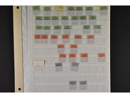 Sweden. Accumulation used on nine stockbbok leaves. OFFCIALS, DUES AND MILITARY, good range and variation with possiblities for shades, etc, very high cat. value. The entire lot is presented at www.philea.se. Mostly fine quality. Show less