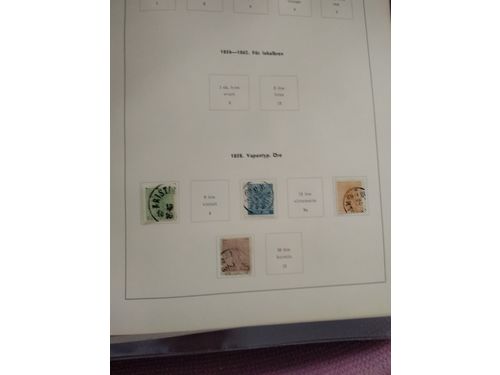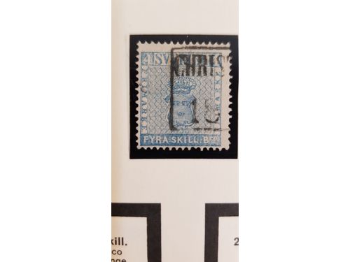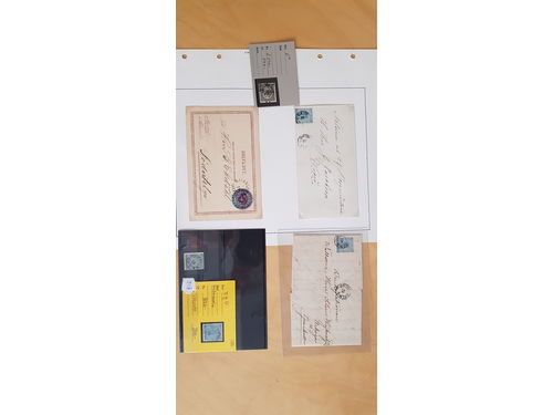 Sweden. Accumulation used 1800s on leaves. Four 4 skilling banco, one postcard cancelled in Björnlunda and one local stamp, all in a very good condition. Please see a selection of scans at www.philea.se. Mostly fine quality. (5) Show less