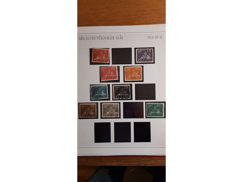 Sweden. Used. Collection 1862–1979 in Facit album + some ** stripes. Also two binders with FDCs Sweden and Åland, plus one stockbook with with various used stamps Germany. Approx. 8 kg. Show less
