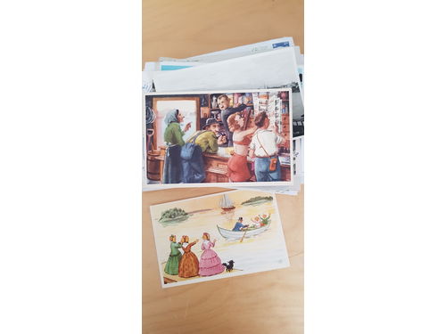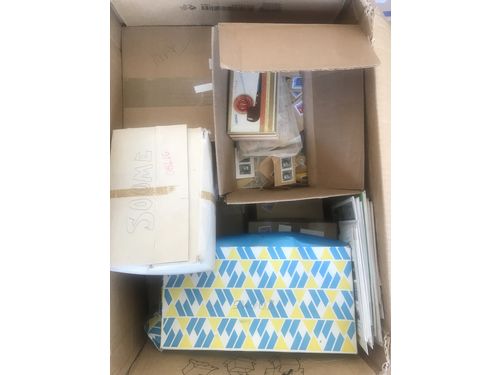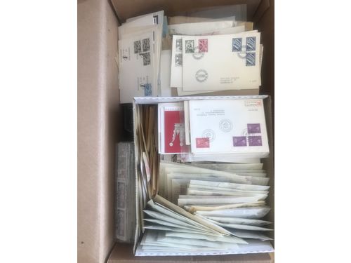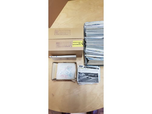Sweden. Collection/accumulation mostly used 1900s in two opened boxes with used massware. One box with duplicates. A shoebox with postcards where some are fairly old. A chanse to find what you are looking for. Good quality. Approx. 7 kg. (>2000) Show less