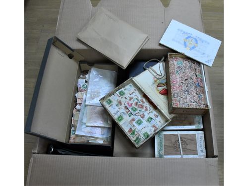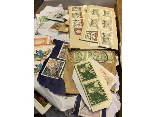Sweden. Used. Removal box with more than 100000 stamps old–modern in bundles, albums and leaves etc. Also 10000s of Finland, Norway and Denmark mostly in envelopes. Approx. 24 kg. Show less