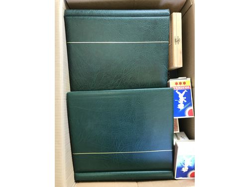 Sweden. Collection/accumulation used 1900–2000 in box. One Swedish Leuchtturm album from 1996-2004 with no stamps. Two nice Stockbooks and one Visir album with stamps. Also one Stockbook with duplicates. Mostly fine quality. Approx. 8 kg. Show less