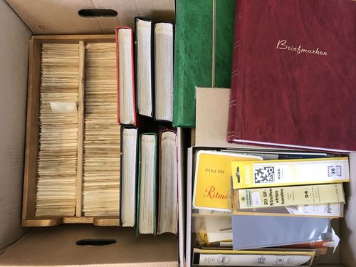 Sweden. Collection/accumulation mostly used 1900s in two opened boxes with used massware. One box with duplicates. A sho..