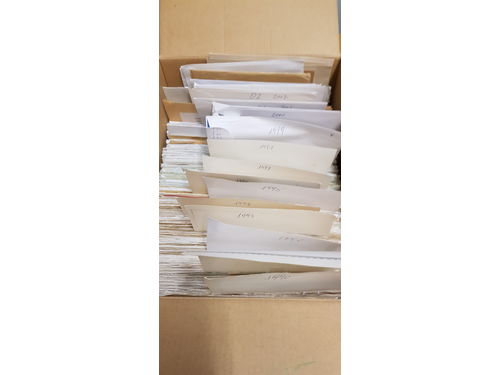 Sweden. Accumulation used 1800–1900s in box. Local stamps, air labels, recommended labels, express labels and others. Strips, blocks and souvenir sheets are amongst the boxes. Also very good stamped ones from different part of Sweden. Please see a selection of scans at www.philea.se. Mostly fine quality. (>10000) Show less