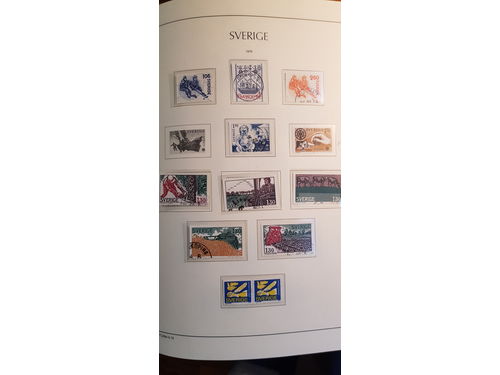 Sweden. Collection used 1900 in box. A complete set of stamps between 1971-1990 on leaves. A lot of Visir leaves with un..