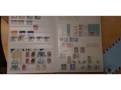 Sweden. Collection/accumulation used 1950s–2000s in box. Swedish unused stamps in eight stockbooks and two Facit albums containing the years of 1962-80 and 1984-88. Also included shoe boxes with duplicates. Please see a selection of scans at www.philea.se. Mostly fine quality. Approx. 11 kg. (>5000) Show less