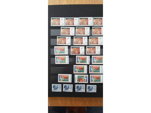 Sweden. Lot used on nine visir leaves. With ca. 300 excellent cancelled stamps from most 1970s. Show less